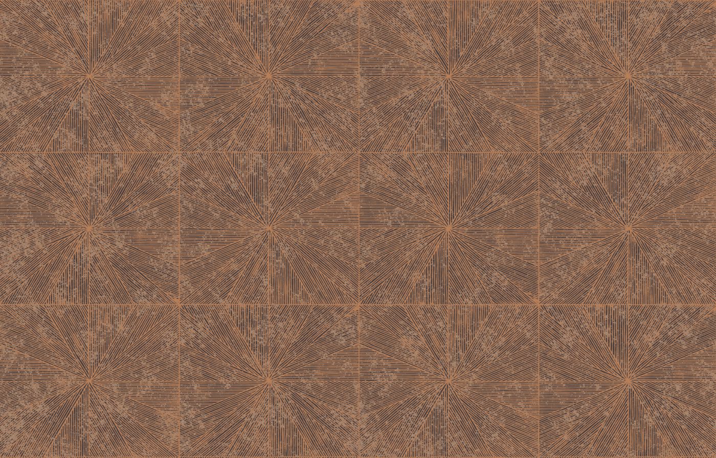 In an art deco movement, this collection borrows the codes of marquetry and the geometric beams of the 1930s to interpret them on wallpaper. Through screen printing, it reveals its inks in relief, as if each line of the decoration was painted by hand. Its colors combine matte with metallic: copper, silver and colored gold, as well as coral, white or cyan blue.