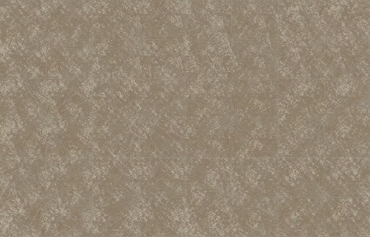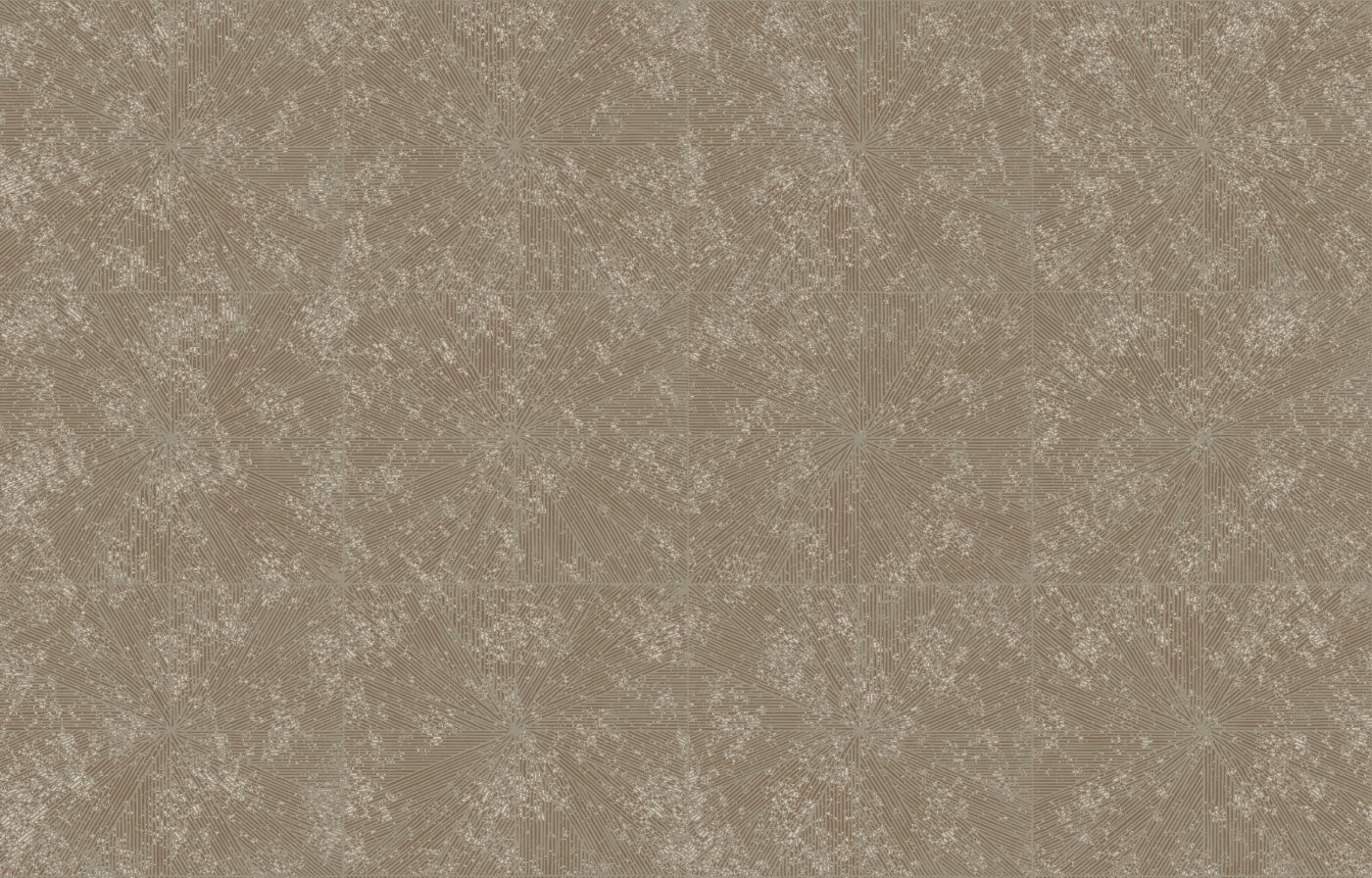 In an art deco movement, this collection borrows the codes of marquetry and the geometric beams of the 1930s to interpret them on wallpaper. Through screen printing, it reveals its inks in relief, as if each line of the decoration was painted by hand. Its colors combine matte with metallic: copper, silver and colored gold, as well as coral, white or cyan blue.