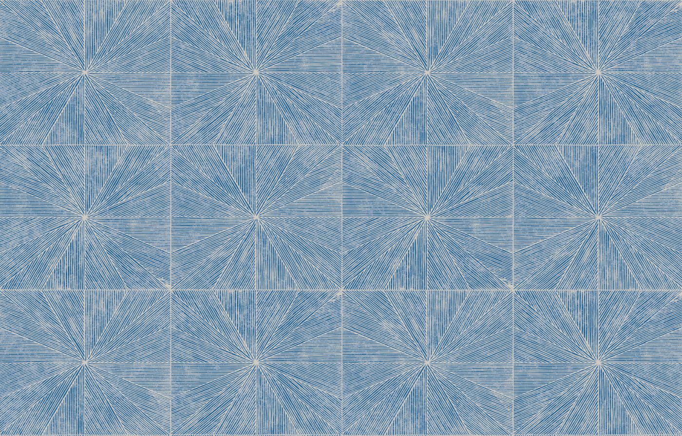 In an art deco movement, this collection borrows the codes of marquetry and the geometric beams of the 1930s to interpret them on wallpaper. Through screen printing, it reveals its inks in relief, as if each line of the decoration was painted by hand. Its colors combine matte with metallic: copper, silver and colored gold, as well as coral, white or cyan blue.