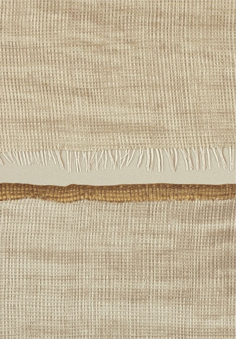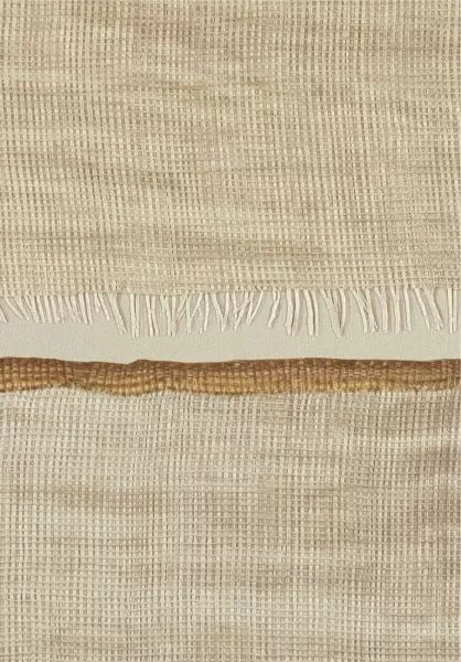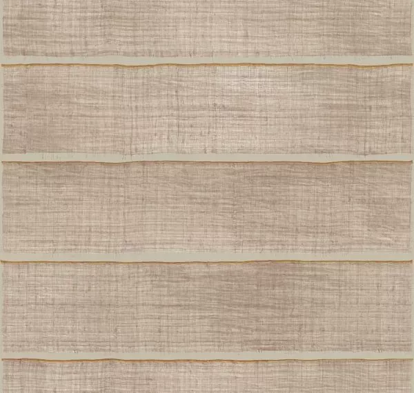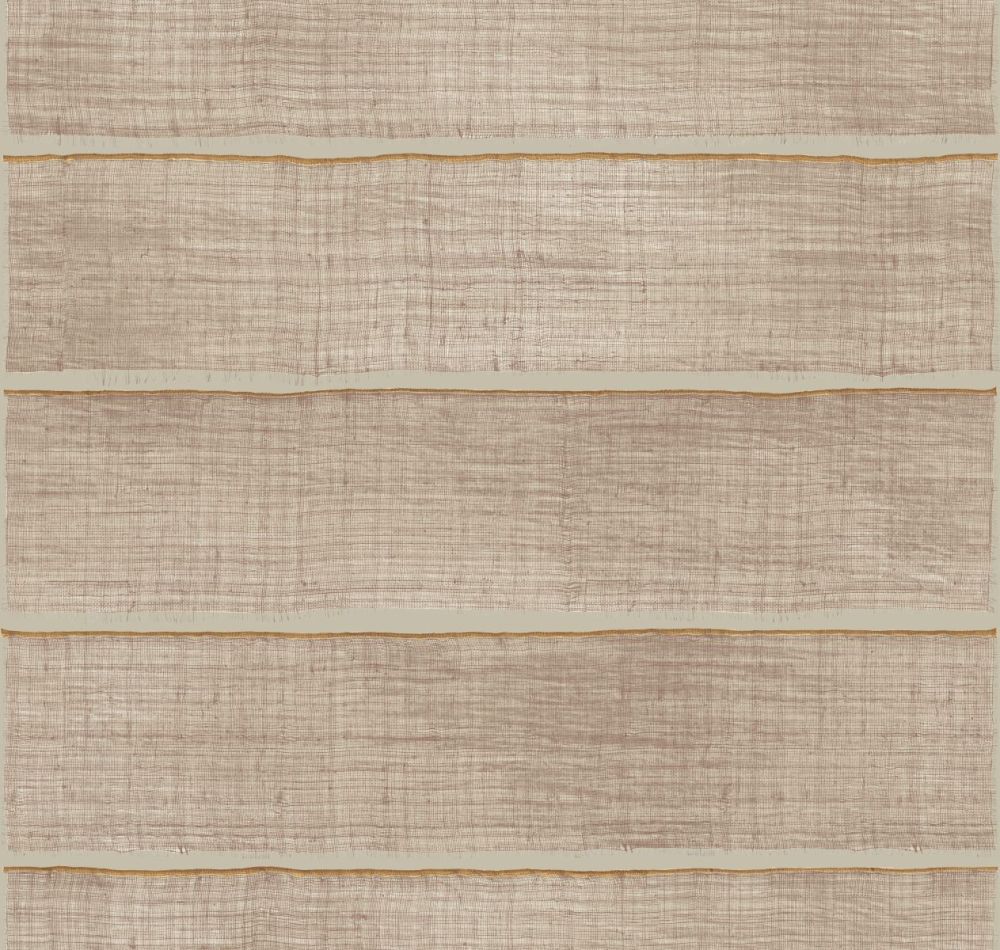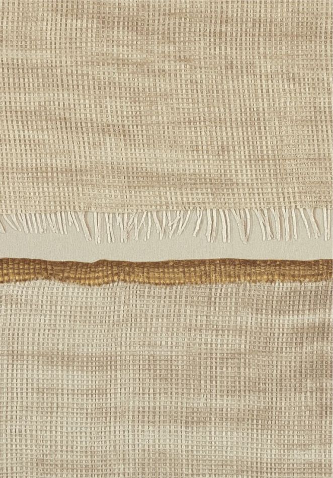 This collection was conceived as a sequel to the Eldorado wallcovering collection, based on the Atelier d'Artiste design. It originates from the discovery of the Korean fabric, Pojagi. These textiles used to wrap gifts and objects (Chogak is the popular term) are composed of several fabrics. They are reinterpreted here in pattern layouts of coated canvas, reflecting a raffia or abaca effect in serene and melodic colors, almost chalky for some: terracotta, powdery pinks, lake greens and blues, natural whites.