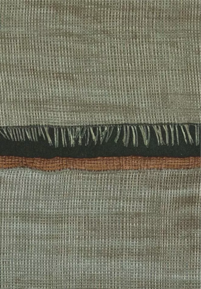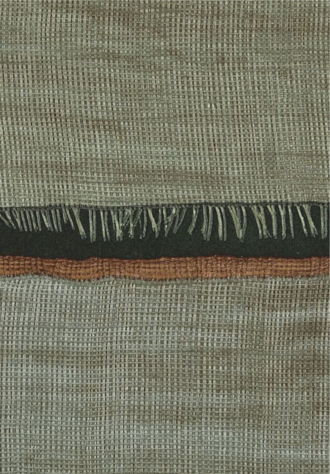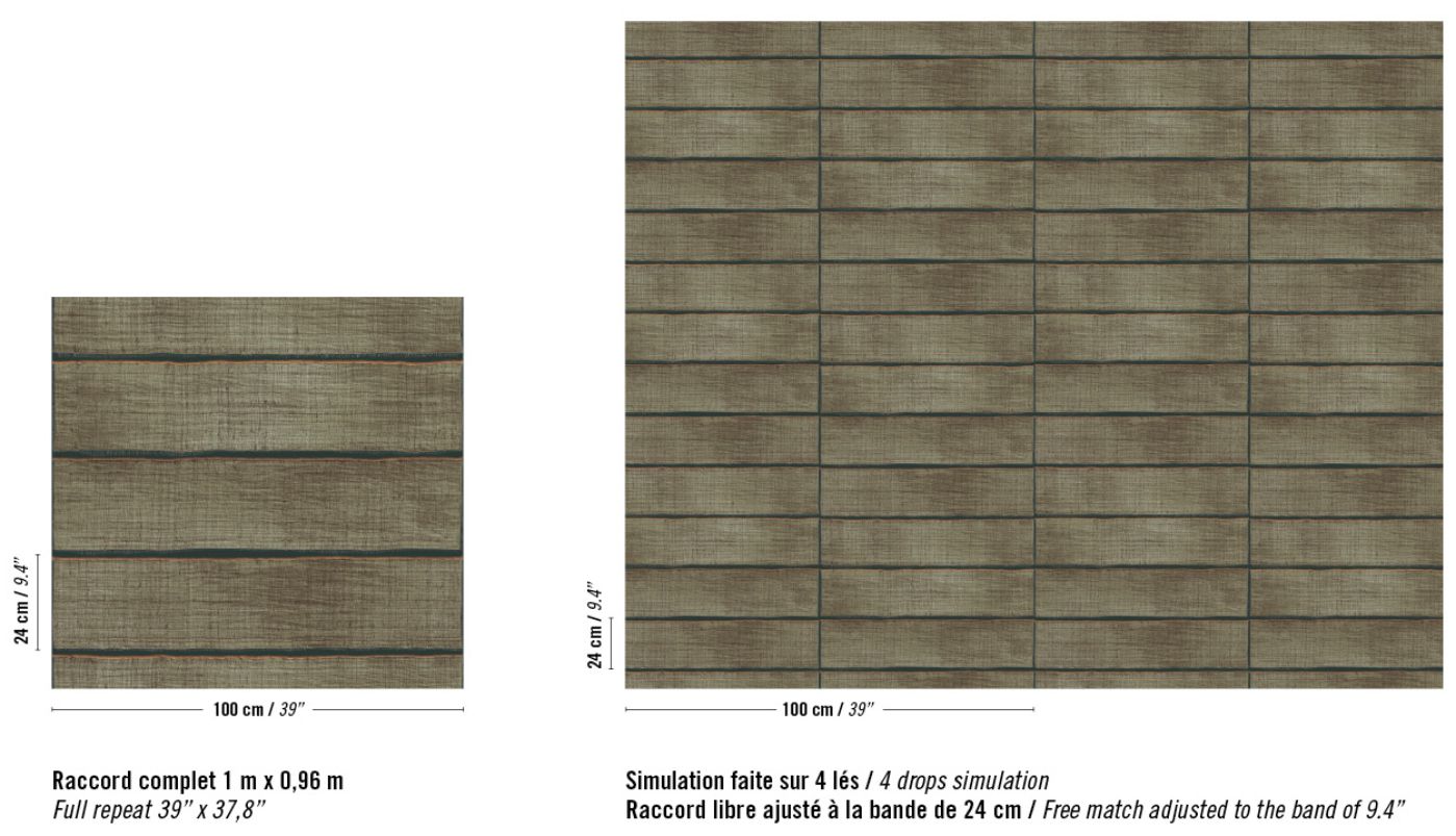 This collection was conceived as a sequel to the Eldorado wallcovering collection, based on the Atelier d'Artiste design. It originates from the discovery of the Korean fabric, Pojagi. These textiles used to wrap gifts and objects (Chogak is the popular term) are composed of several fabrics. They are reinterpreted here in pattern layouts of coated canvas, reflecting a raffia or abaca effect in serene and melodic colors, almost chalky for some: terracotta, powdery pinks, lake greens and blues, natural whites.
