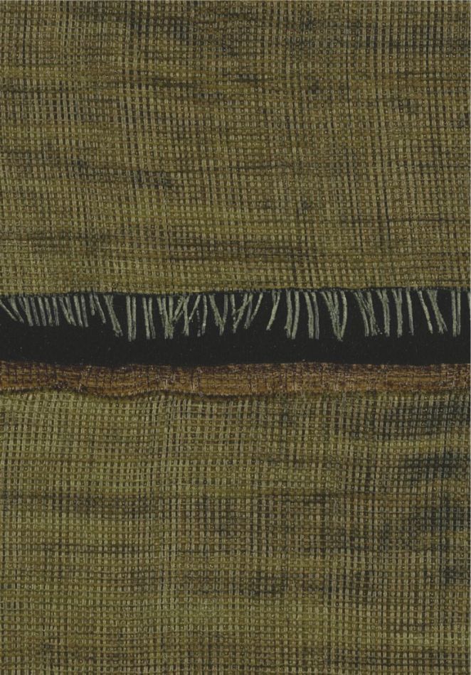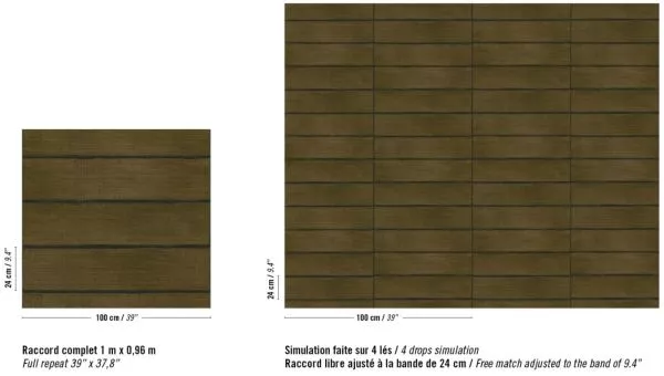 This collection was conceived as a sequel to the Eldorado wallcovering collection, based on the Atelier d'Artiste design. It originates from the discovery of the Korean fabric, Pojagi. These textiles used to wrap gifts and objects (Chogak is the popular term) are composed of several fabrics. They are reinterpreted here in pattern layouts of coated canvas, reflecting a raffia or abaca effect in serene and melodic colors, almost chalky for some: terracotta, powdery pinks, lake greens and blues, natural whites.