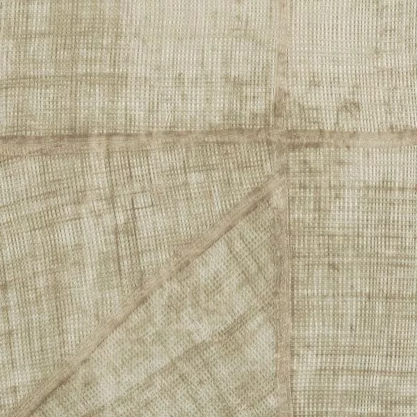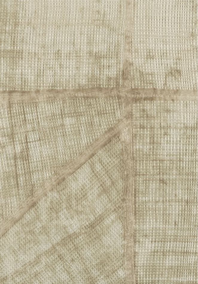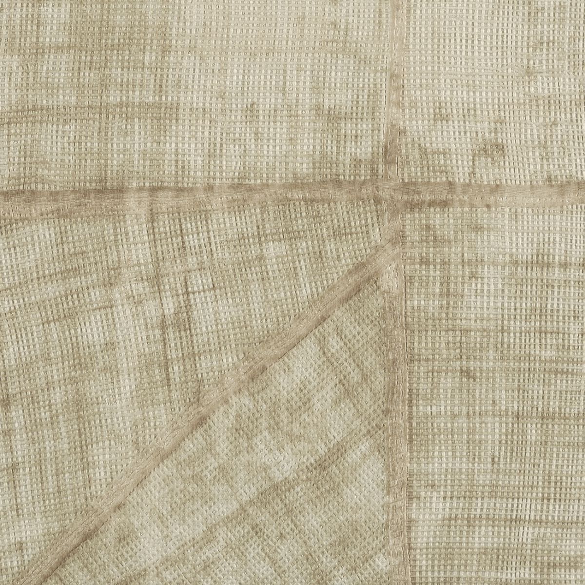 This collection was conceived as a sequel to the Eldorado wallcovering collection, based on the Atelier d'Artiste design. It originates from the discovery of the Korean fabric, Pojagi. These textiles used to wrap gifts and objects (Chogak is the popular term) are composed of several fabrics. They are reinterpreted here in pattern layouts of coated canvas, reflecting a raffia or abaca effect in serene and melodic colors, almost chalky for some: terracotta, powdery pinks, lake greens and blues, natural whites.