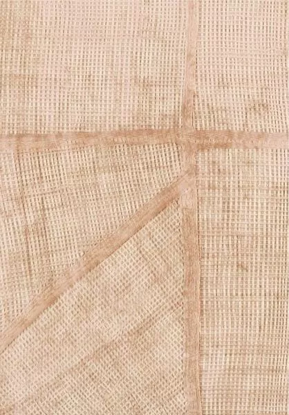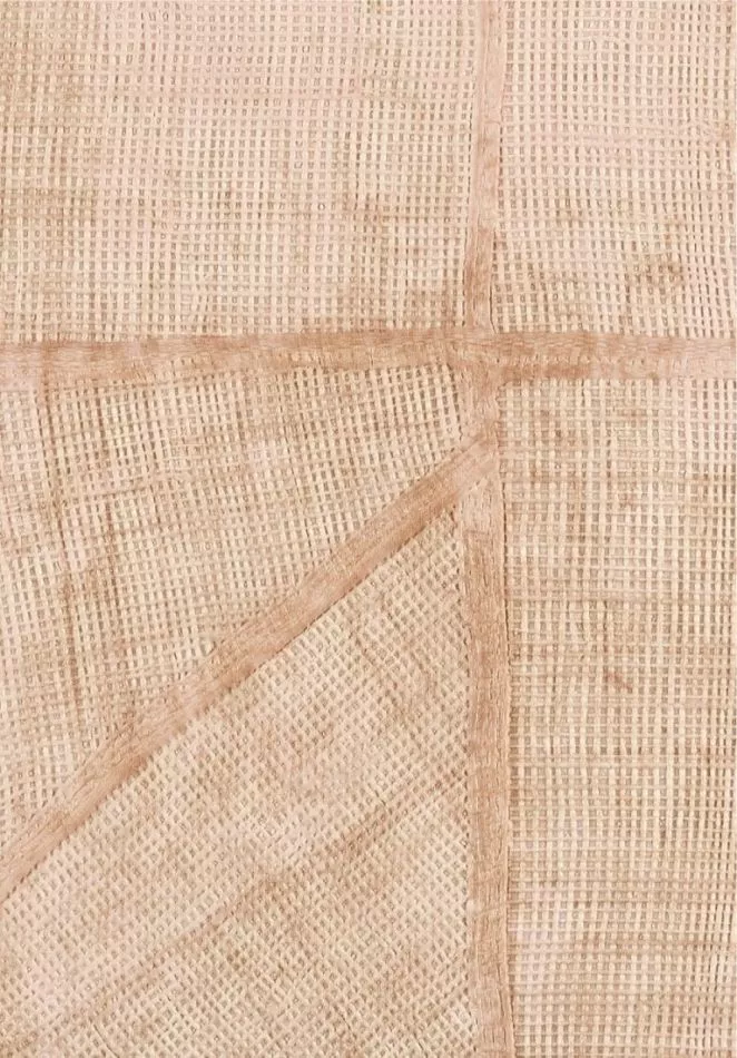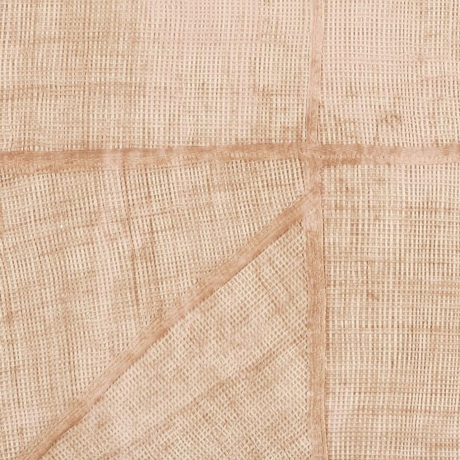 This collection was conceived as a sequel to the Eldorado wallcovering collection, based on the Atelier d'Artiste design. It originates from the discovery of the Korean fabric, Pojagi. These textiles used to wrap gifts and objects (Chogak is the popular term) are composed of several fabrics. They are reinterpreted here in pattern layouts of coated canvas, reflecting a raffia or abaca effect in serene and melodic colors, almost chalky for some: terracotta, powdery pinks, lake greens and blues, natural whites.