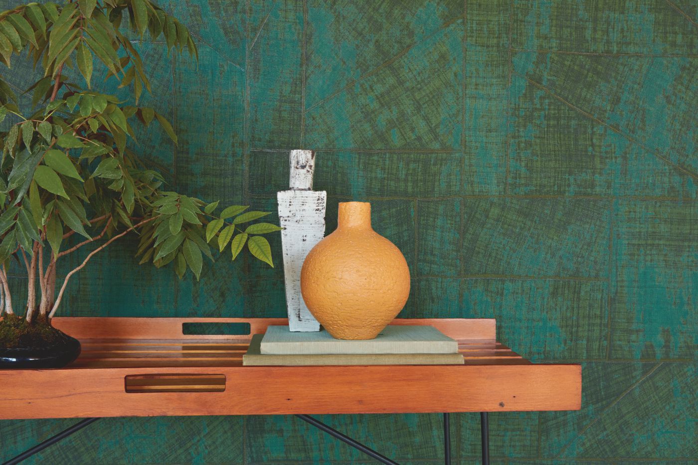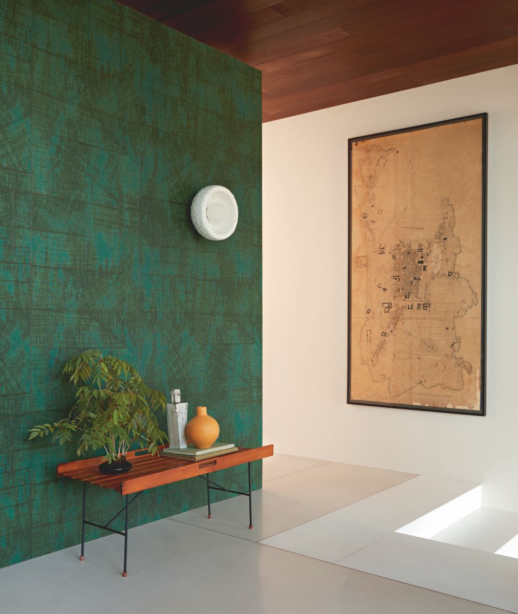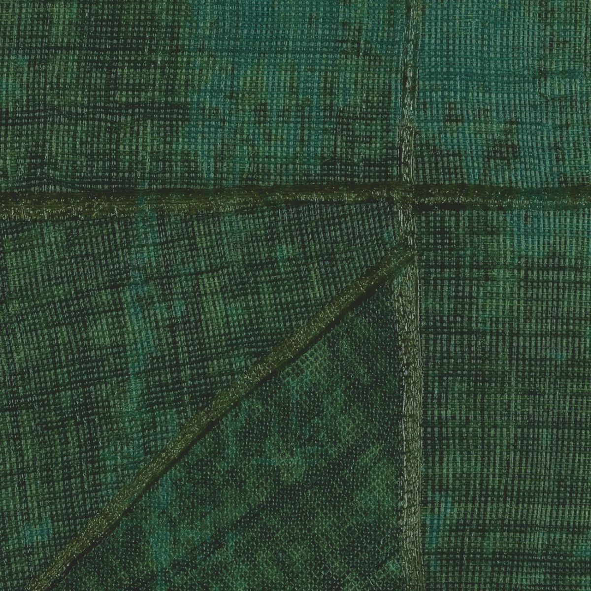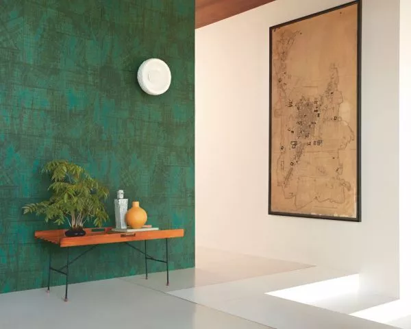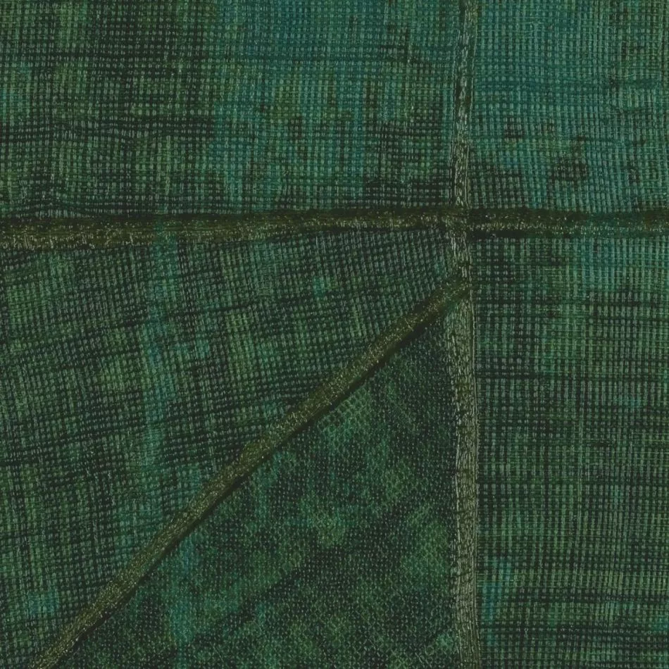 This collection was conceived as a sequel to the Eldorado wallcovering collection, based on the Atelier d'Artiste design. It originates from the discovery of the Korean fabric, Pojagi. These textiles used to wrap gifts and objects (Chogak is the popular term) are composed of several fabrics. They are reinterpreted here in pattern layouts of coated canvas, reflecting a raffia or abaca effect in serene and melodic colors, almost chalky for some: terracotta, powdery pinks, lake greens and blues, natural whites.