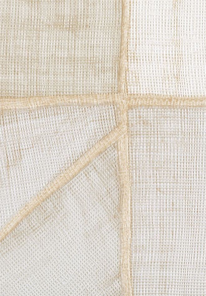 This collection was conceived as a sequel to the Eldorado wallcovering collection, based on the Atelier d'Artiste design. It originates from the discovery of the Korean fabric, Pojagi. These textiles used to wrap gifts and objects (Chogak is the popular term) are composed of several fabrics. They are reinterpreted here in pattern layouts of coated canvas, reflecting a raffia or abaca effect in serene and melodic colors, almost chalky for some: terracotta, powdery pinks, lake greens and blues, natural whites.