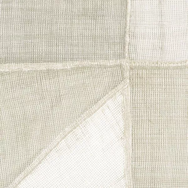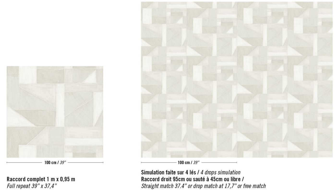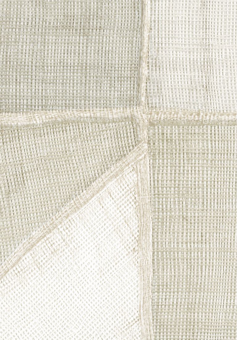 This collection was conceived as a sequel to the Eldorado wallcovering collection, based on the Atelier d'Artiste design. It originates from the discovery of the Korean fabric, Pojagi. These textiles used to wrap gifts and objects (Chogak is the popular term) are composed of several fabrics. They are reinterpreted here in pattern layouts of coated canvas, reflecting a raffia or abaca effect in serene and melodic colors, almost chalky for some: terracotta, powdery pinks, lake greens and blues, natural whites.