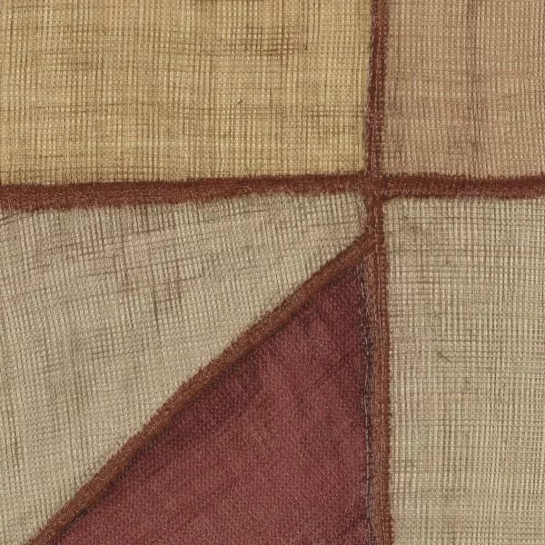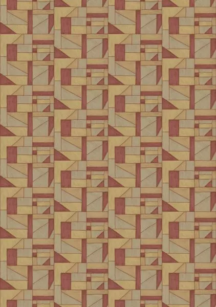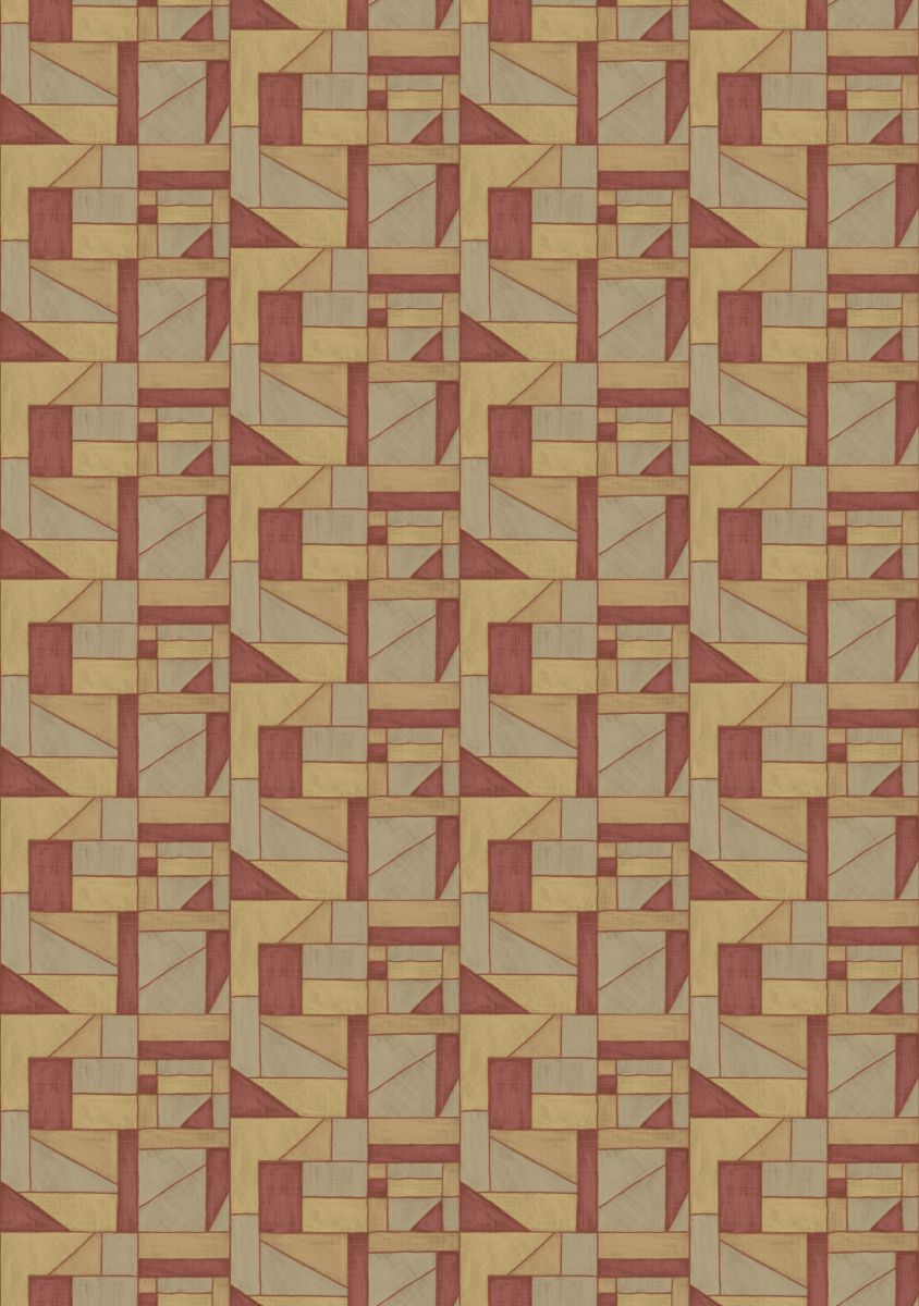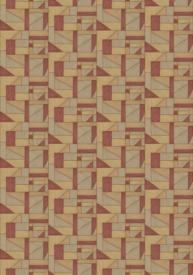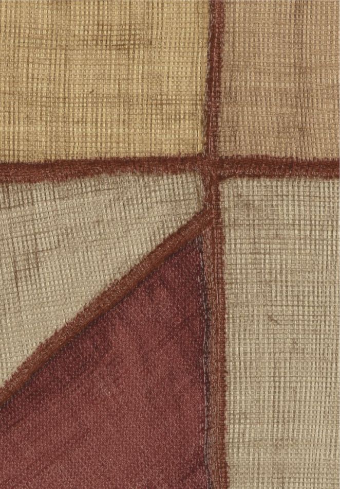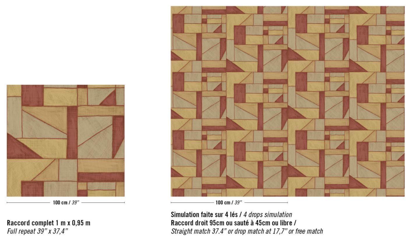 This collection was conceived as a sequel to the Eldorado wallcovering collection, based on the Atelier d'Artiste design. It originates from the discovery of the Korean fabric, Pojagi. These textiles used to wrap gifts and objects (Chogak is the popular term) are composed of several fabrics. They are reinterpreted here in pattern layouts of coated canvas, reflecting a raffia or abaca effect in serene and melodic colors, almost chalky for some: terracotta, powdery pinks, lake greens and blues, natural whites.