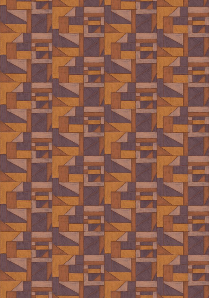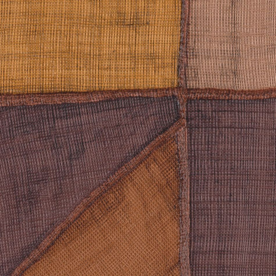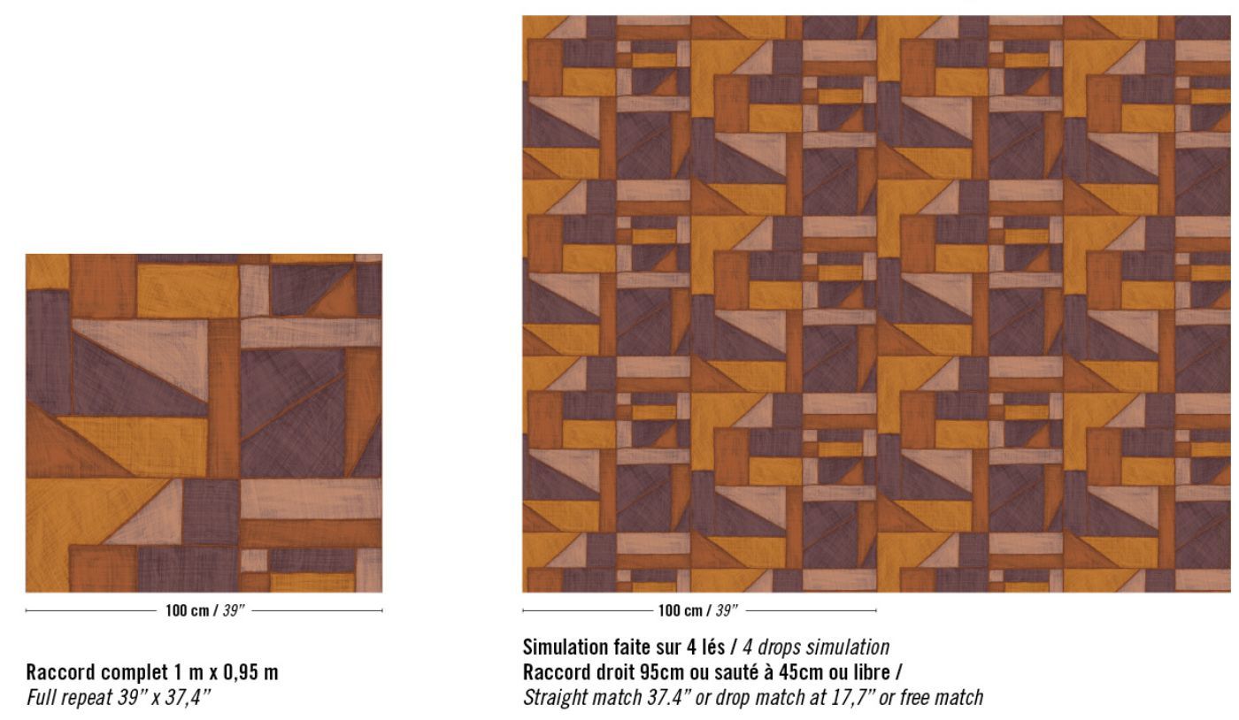 This collection was conceived as a sequel to the Eldorado wallcovering collection, based on the Atelier d'Artiste design. It originates from the discovery of the Korean fabric, Pojagi. These textiles used to wrap gifts and objects (Chogak is the popular term) are composed of several fabrics. They are reinterpreted here in pattern layouts of coated canvas, reflecting a raffia or abaca effect in serene and melodic colors, almost chalky for some: terracotta, powdery pinks, lake greens and blues, natural whites.