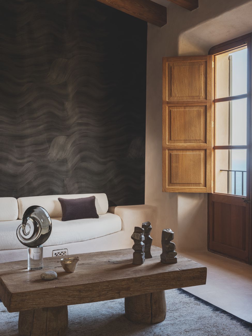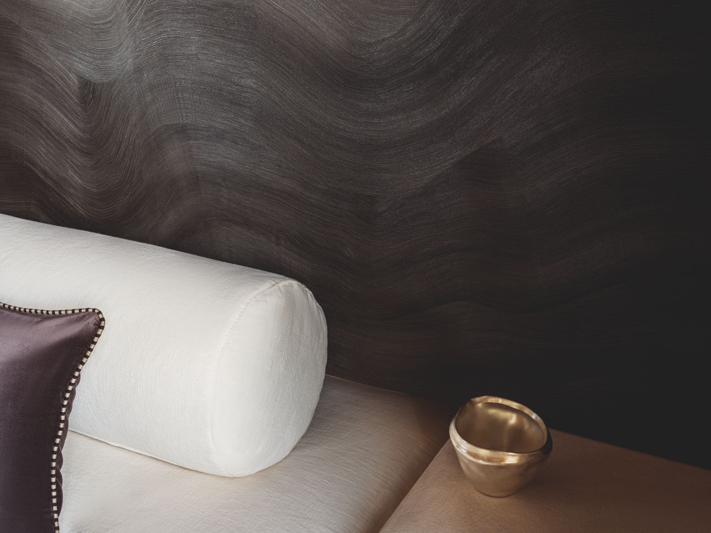 Fascinated by the raw energy of minerals, the Lanzarote collection transforms them into spectacular works of art. Far from being static, stone transcends immobility to become fluid and moving. Semi-precious undulations come in luminescent hues. Raw rock unveils quartz chips, terrazzo fragments and sparkling inlays, like hidden gems. Travertine, veined with light, offers a soft glow. Onyx creates a monumental mineral landscape. Each creation sculpts a world of unknown powers, enhanced by the eternal colours of stone and metal: basalt, aquamarine, amber yellow, gold, silver...