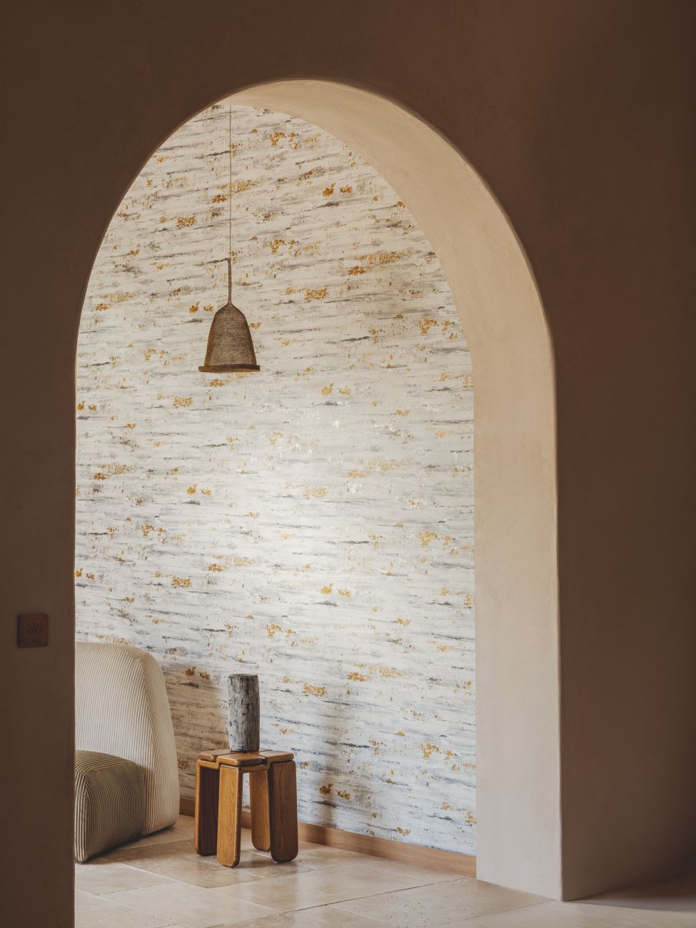 Fascinated by the raw energy of minerals, the Lanzarote collection transforms them into spectacular works of art. Far from being static, stone transcends immobility to become fluid and moving. Semi-precious undulations come in luminescent hues. Raw rock unveils quartz chips, terrazzo fragments and sparkling inlays, like hidden gems. Travertine, veined with light, offers a soft glow. Onyx creates a monumental mineral landscape. Each creation sculpts a world of unknown powers, enhanced by the eternal colours of stone and metal: basalt, aquamarine, amber yellow, gold, silver...