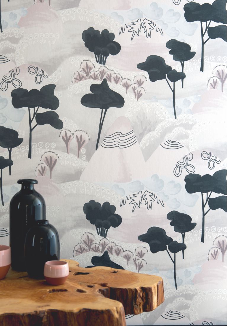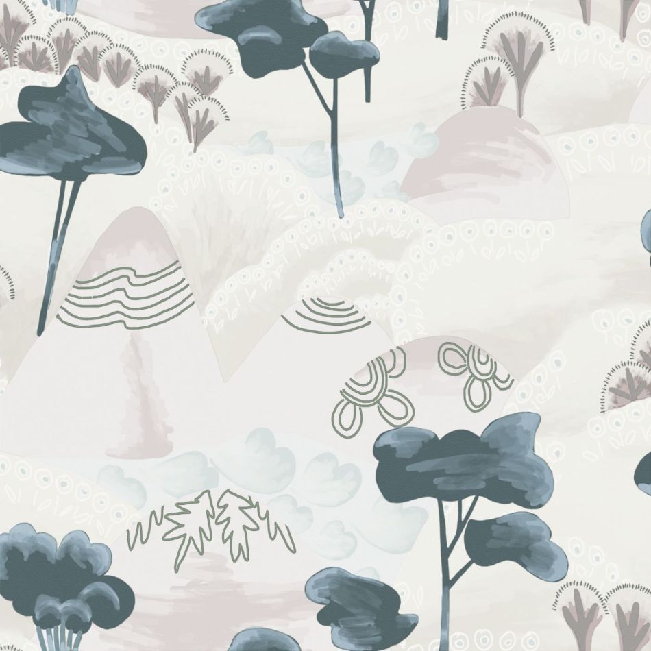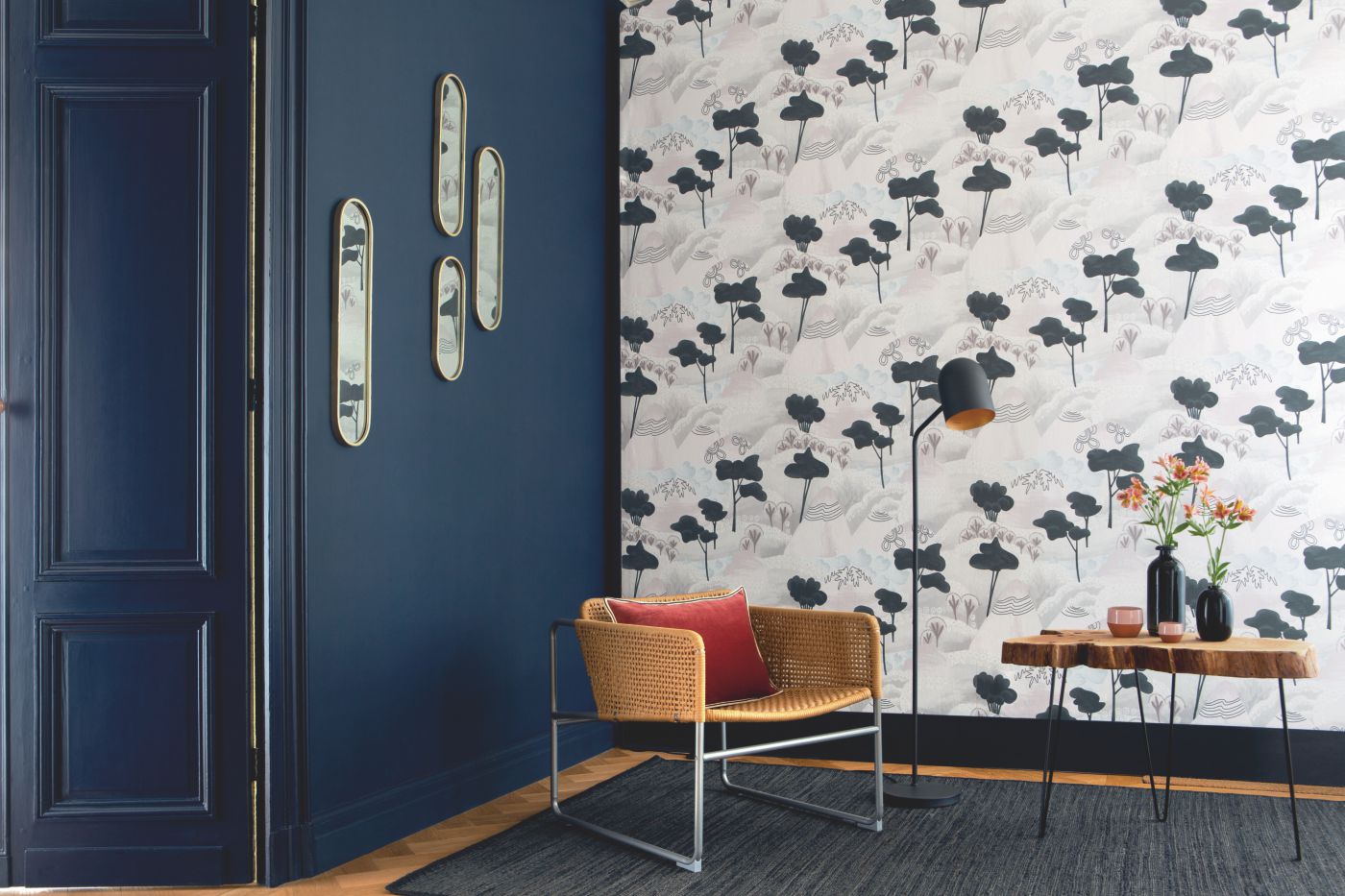 A wallpaper collection inspired by Indian miniature painting: colored, stylized depictions of scenes from everyday life. 5 designs and 3 panorama motifs.