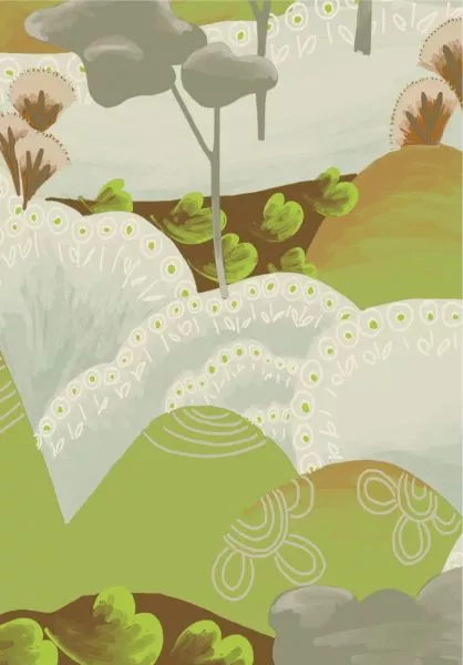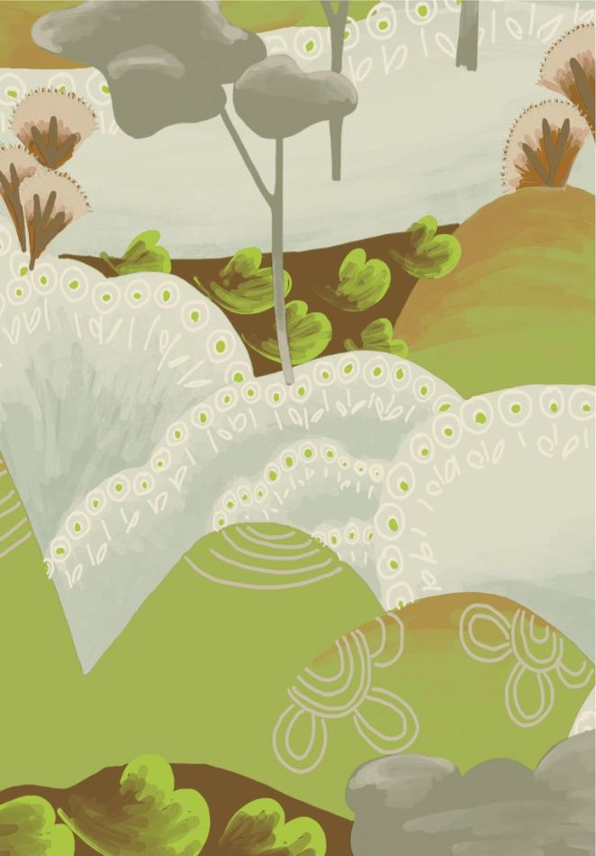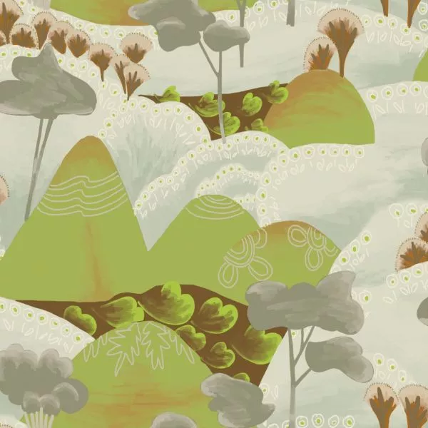 A wallpaper collection inspired by Indian miniature painting: colored, stylized depictions of scenes from everyday life. 5 designs and 3 panorama motifs.