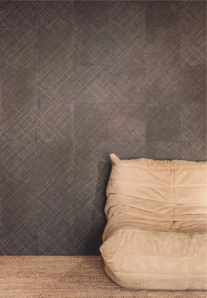 Originally imagined in meticulous weavings made by outstanding craftsmen, these material effects are produced in vinyl in 1 m widths to respect the original weavings.