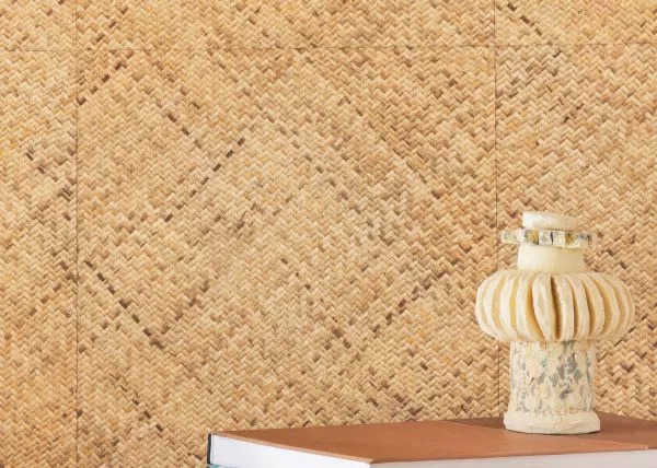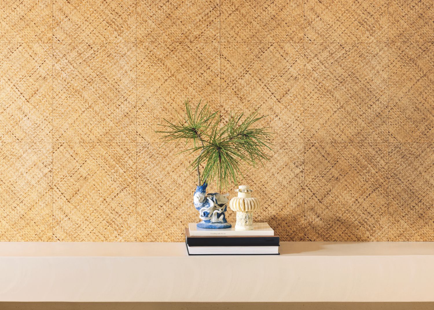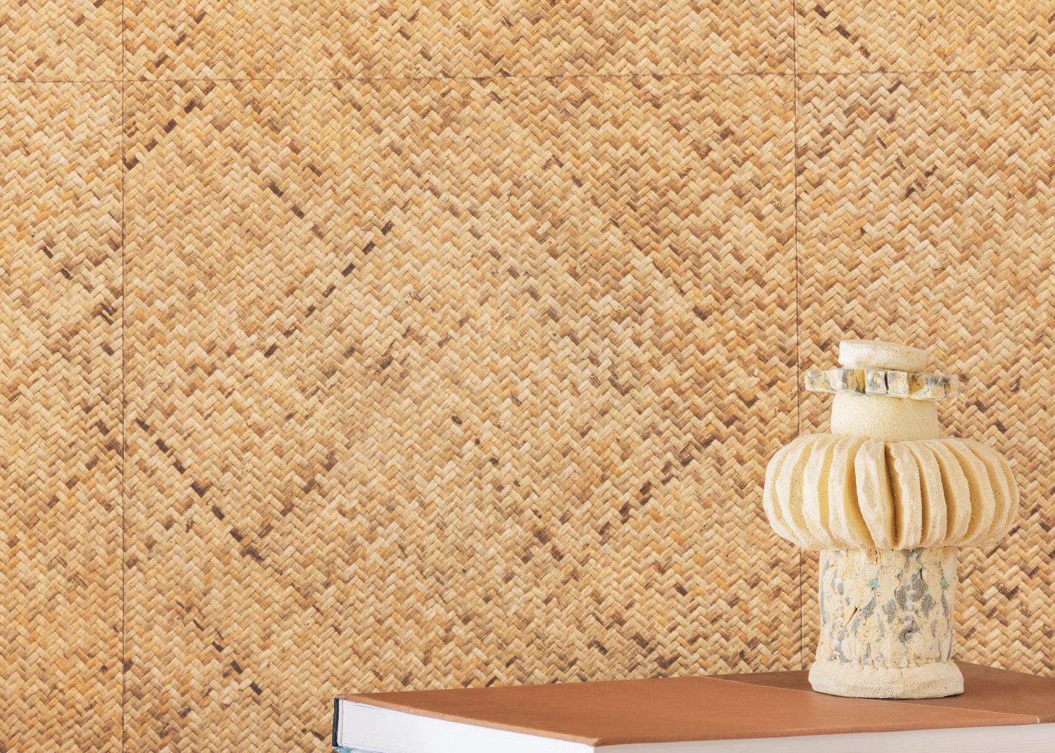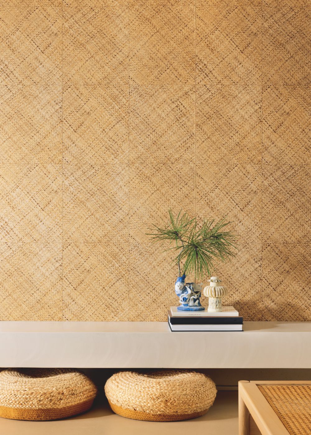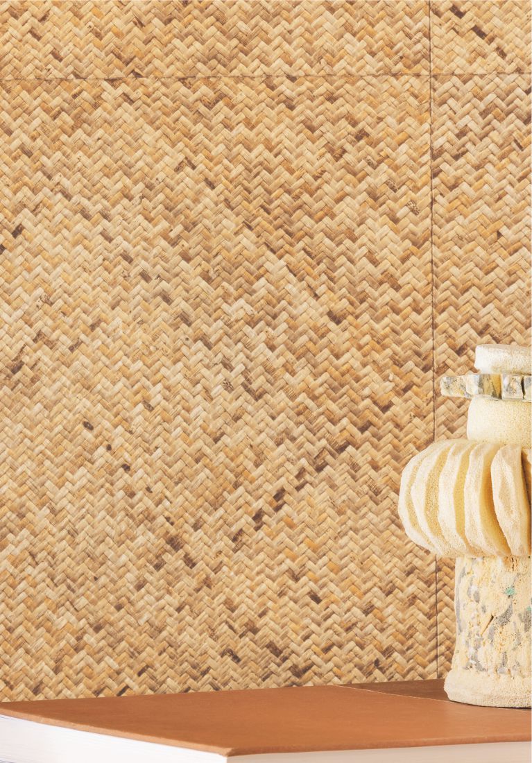 This vinyl collection offers superb textures of plant materials and extends the immersion in the wild with four panoramic designs that connect endlessly. Originally imagined in meticulous weavings made by outstanding craftsmen, these material effects are produced in vinyl in 1 m widths to respect the original weavings.