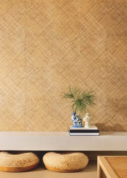 Description: Embossed vinyl wallpaper with the aspect of a vegetal fiber