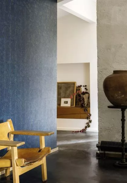 This embossed vinyl wallpaper pays tribute to natural fibre and the craftsmanship of household objects.