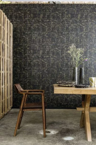 This embossed vinyl wallpaper pays tribute to natural fibre and the craftsmanship of household objects.