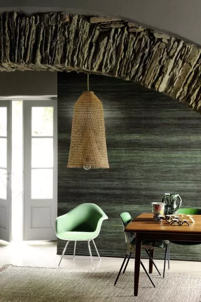 A full immersion into the realm of plants and senses... What is at stakes with the strength and authenticity of these two wallpapers is the power of a handshake between man and nature. Like gifted sisters, the abaca fibre and the banana leaf, both worked by hand, share their light and their encounters: tinged plaster, metallic reflections, unexpected hues...