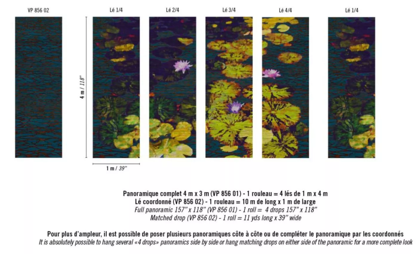Measurements +/- 3% : Roll of 4 drops of 1m ( 39") width X 3m (118") height