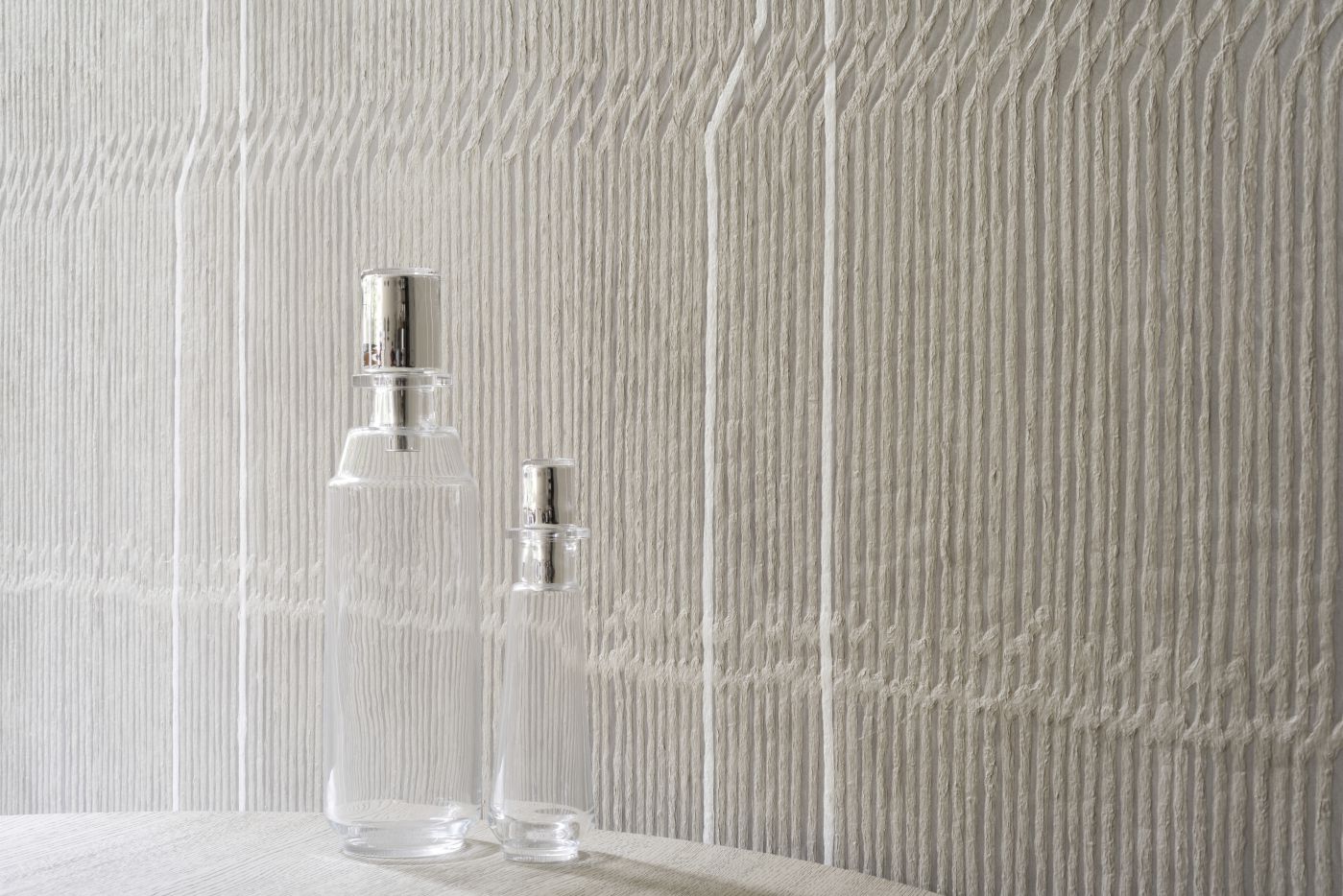 This collection was born from the desire to explore paper in our library of materials. It takes a very rare know-how to handle paper pulp, an extremely technical and indocile element. The craftsman who masters it traces the design in the grooves, flat surfaces and patterns, shiny reliefs against matte ones. Neutral or dark shades are highlighted by glistening trails and metallic sparks. Each one is made by hand and bears unique differences. Like the print of an artist or a painting...