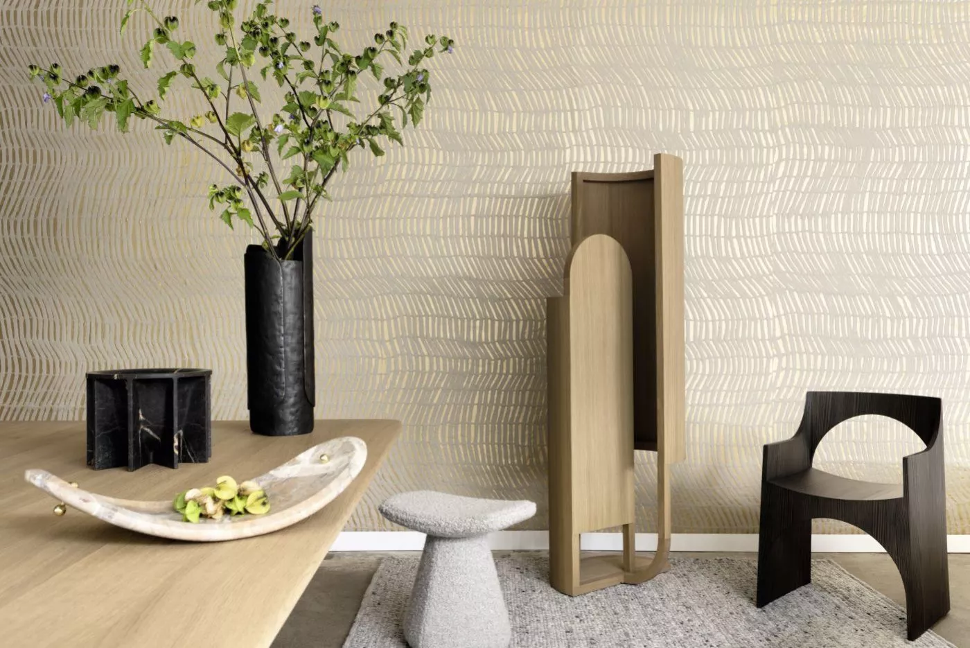 This collection was born from the desire to explore paper in our library of materials. It takes a very rare know-how to handle paper pulp, an extremely technical and indocile element. The craftsman who masters it traces the design in the grooves, flat surfaces and patterns, shiny reliefs against matte ones. Neutral or dark shades are highlighted by glistening trails and metallic sparks. Each one is made by hand and bears unique differences. Like the print of an artist or a painting...