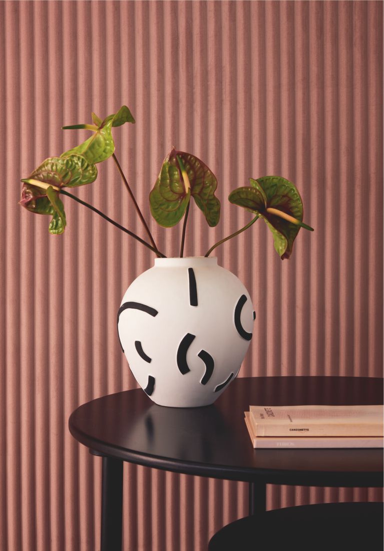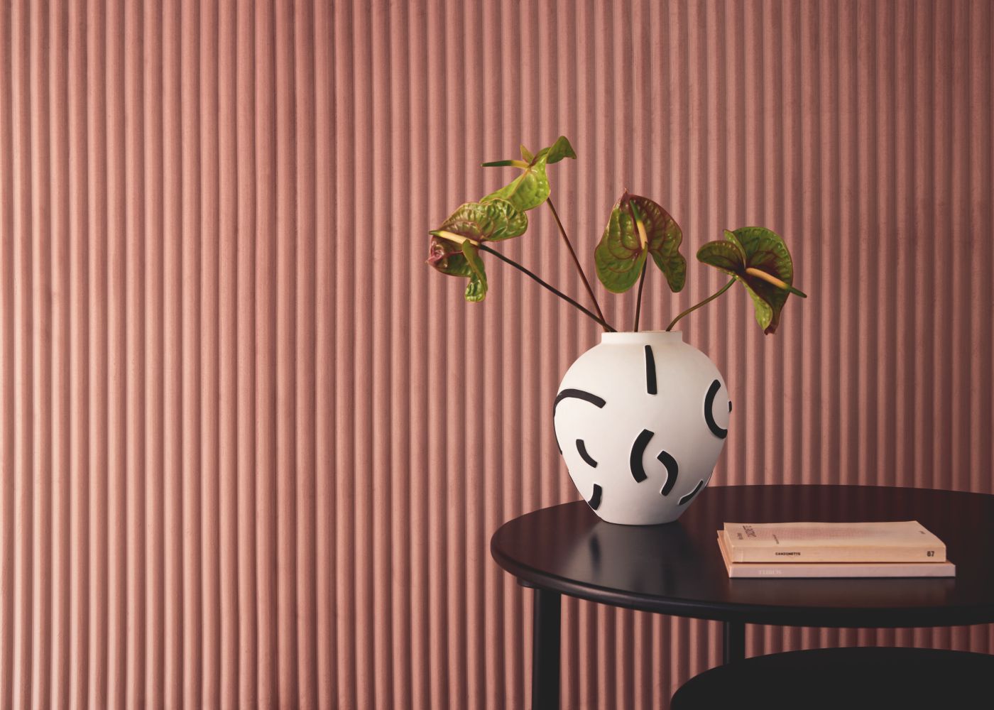 Greek columns and classical fluting enter a parallel universe. 3D design invents an ancient legacy formed of soft yet sculptural ribbing, like a velvety architectural creation. A comforting wall covering made to be touched, with pure, minimalist lines that lend themselves to plays on light and inventing new inflections.