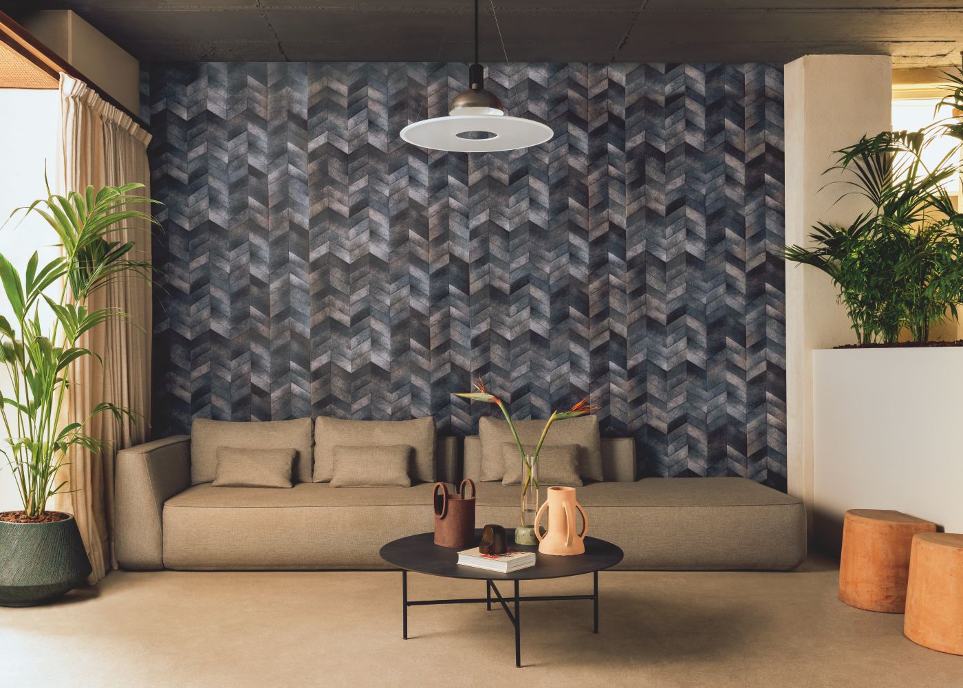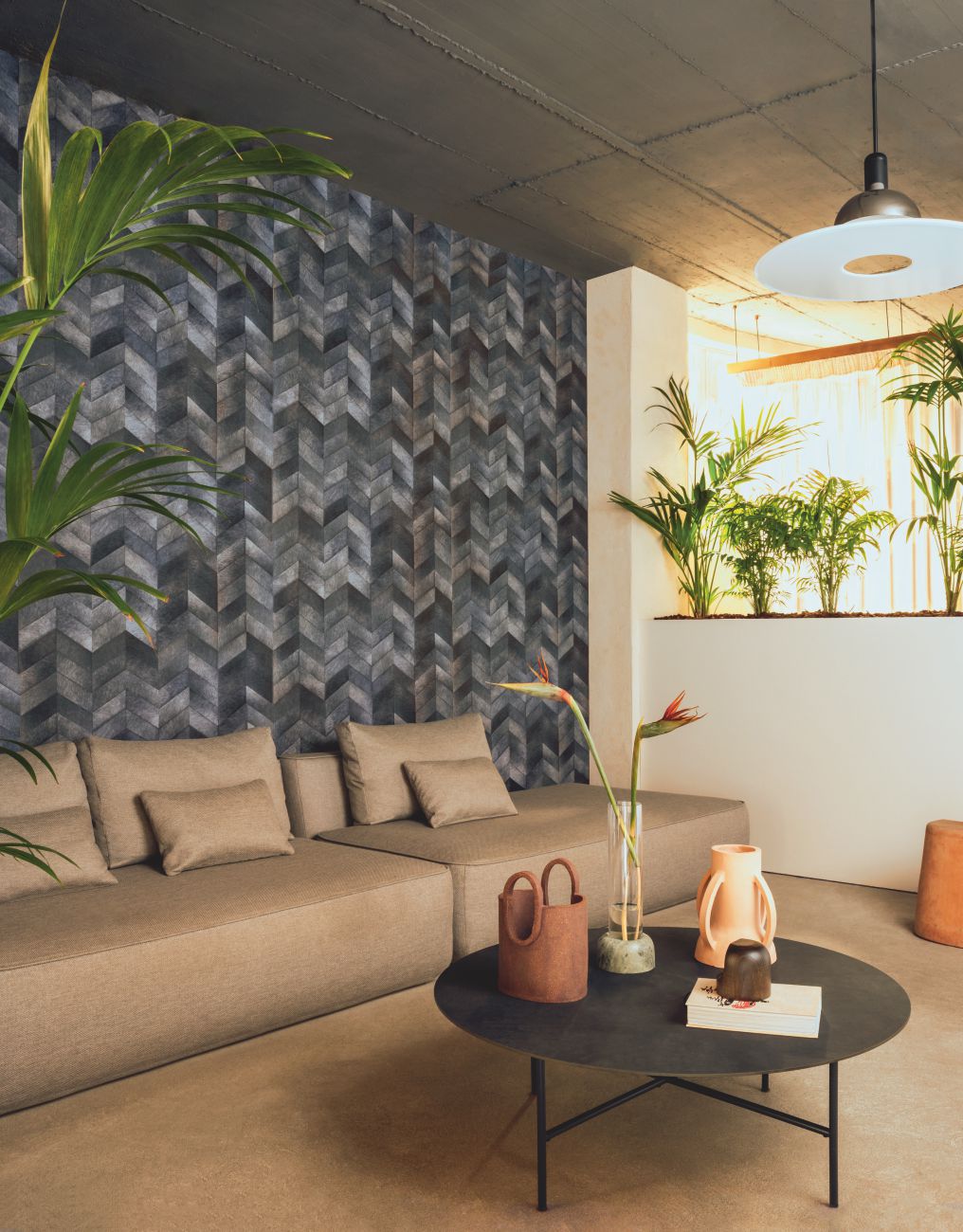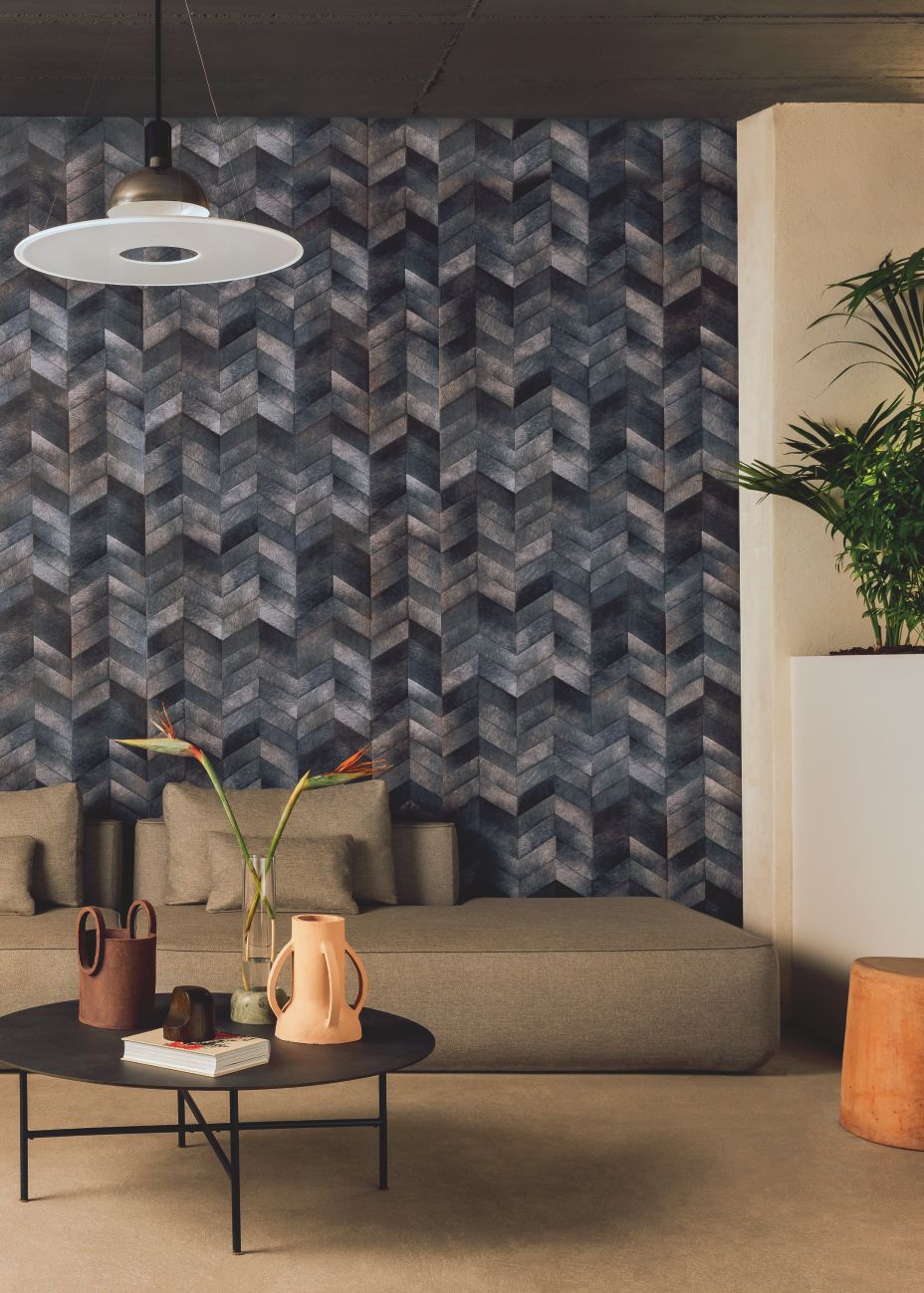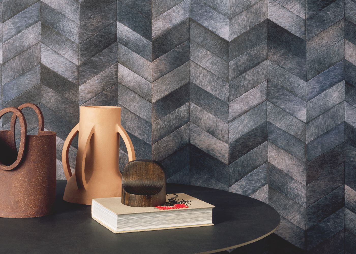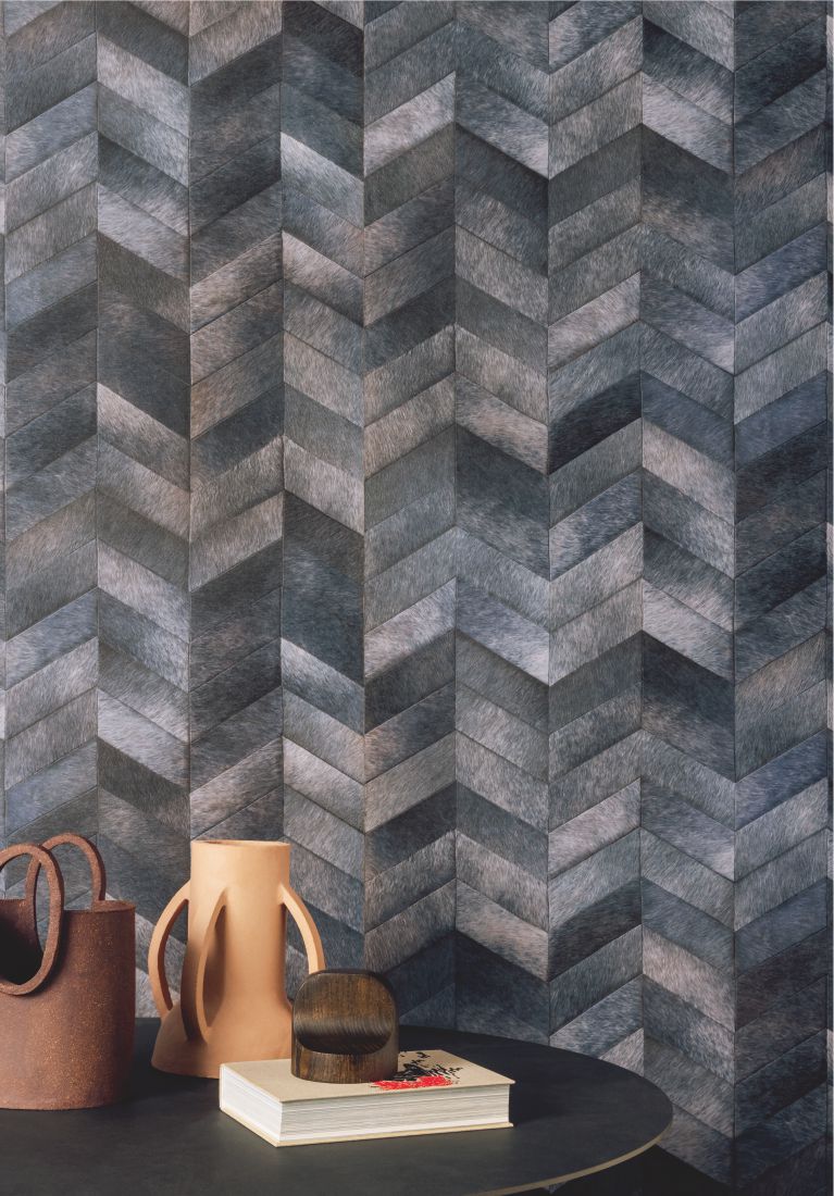 These vinyl creations faithfully recreate the look and feel of wild animal fleeces, sometimes departing from them to retain their raw energy. A journey of unique textures created using a specific technological combination of rotogravure and embossing cylinders. 5 panoramic prints complete the collection.