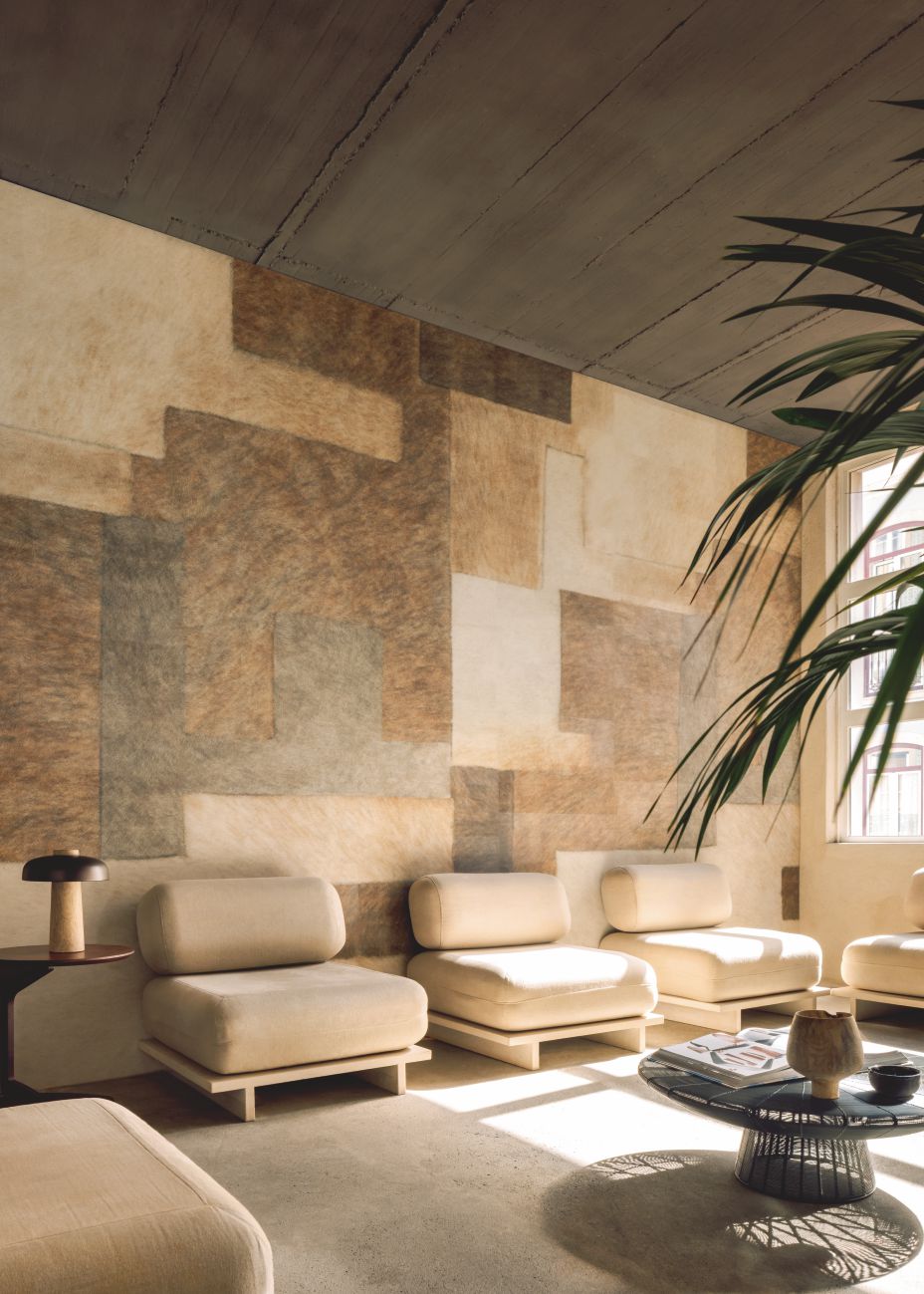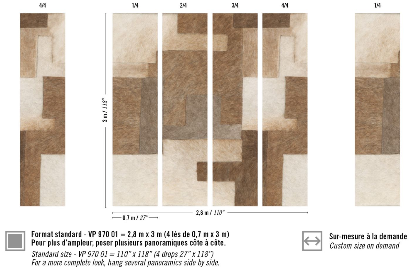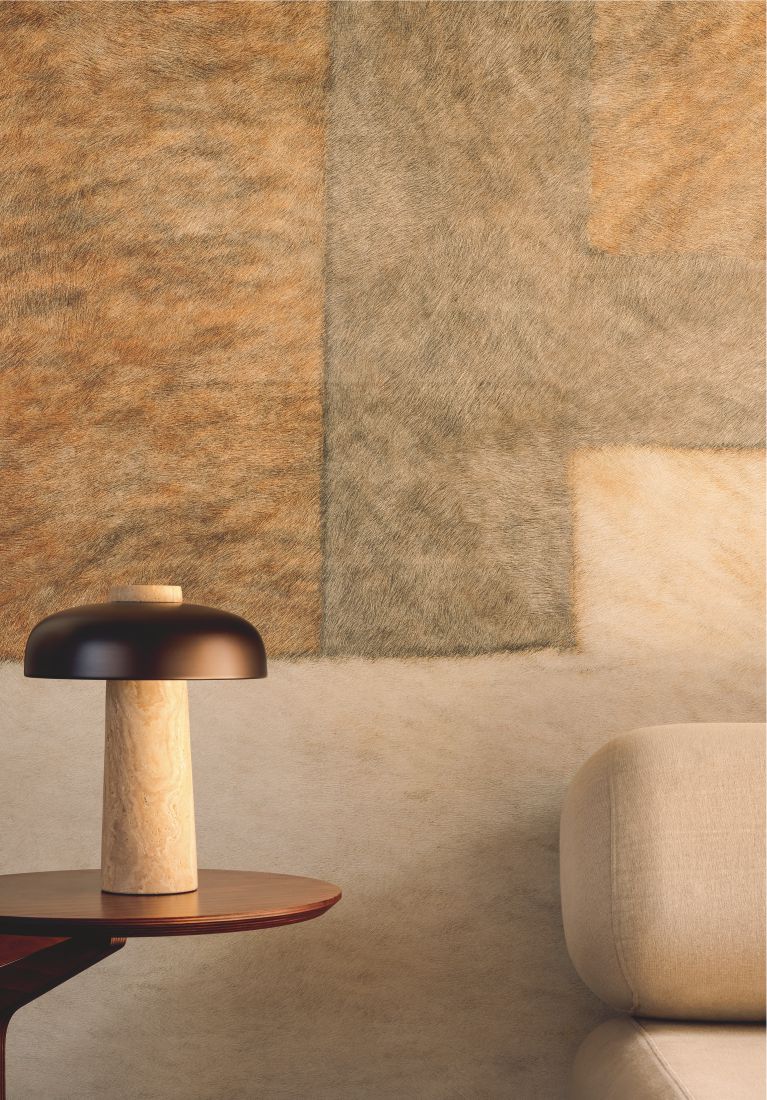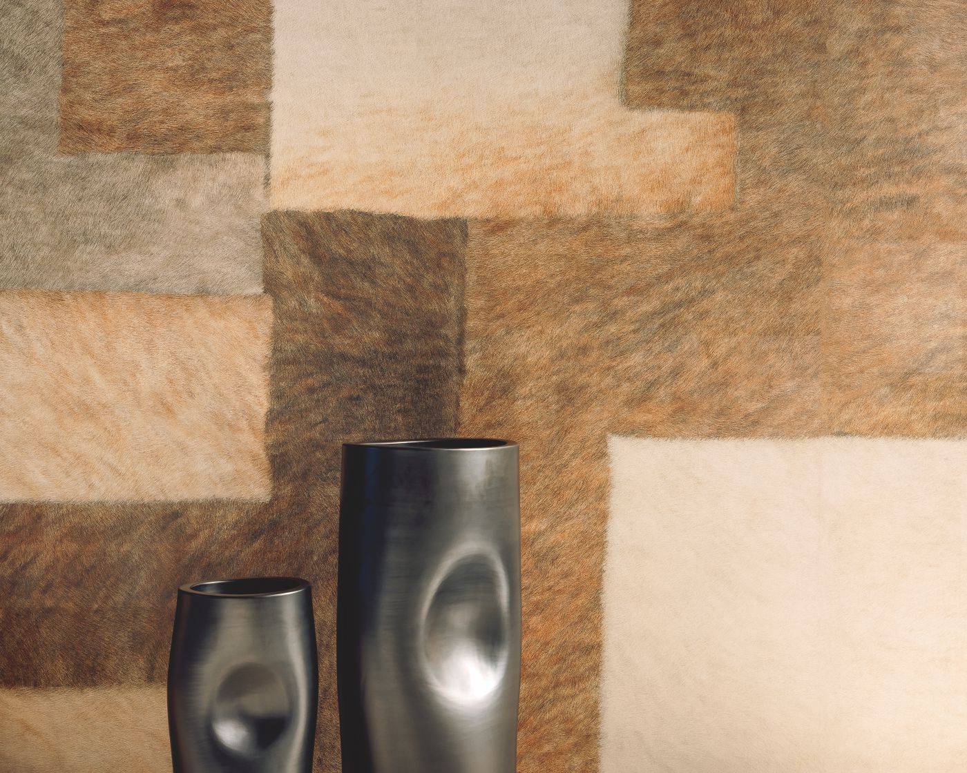 These vinyl creations faithfully recreate the look and feel of wild animal fleeces, sometimes departing from them to retain their raw energy. A journey of unique textures created using a specific technological combination of rotogravure and embossing cylinders.5 panoramic prints complete the collection.