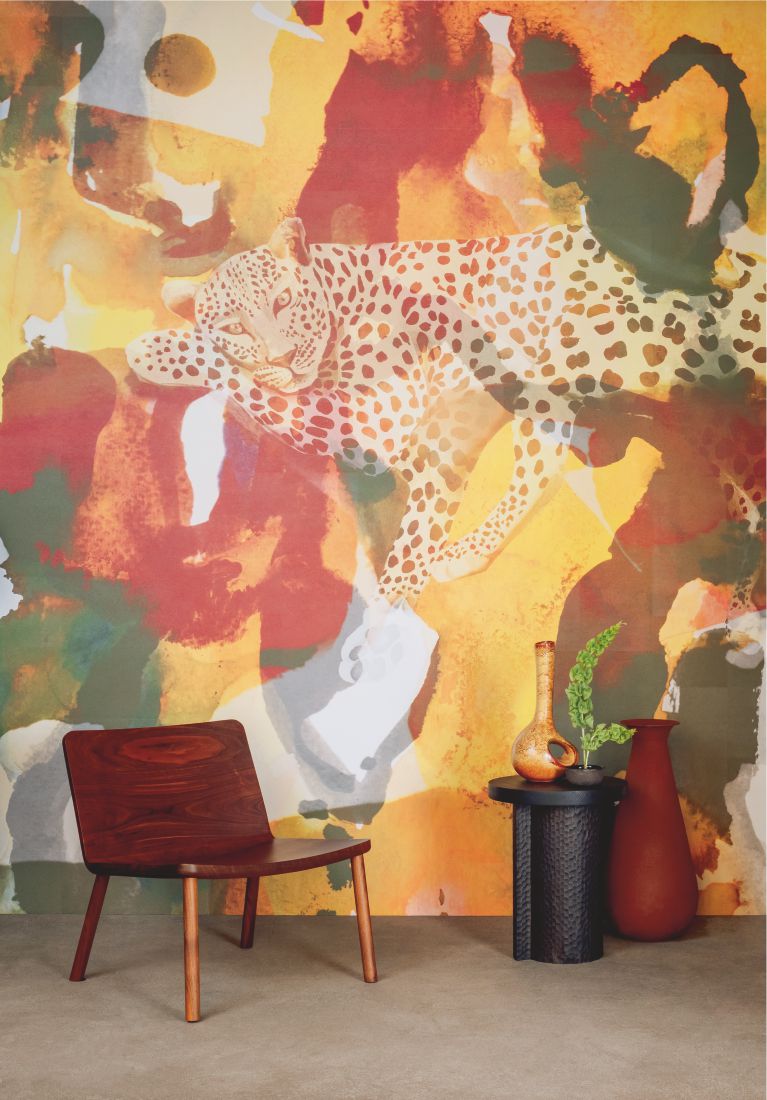 These vinyl creations faithfully recreate the look and feel of wild animal fleeces, sometimes departing from them to retain their raw energy. A journey of unique textures created using a specific technological combination of rotogravure and embossing cylinders.5 panoramic prints complete the collection.