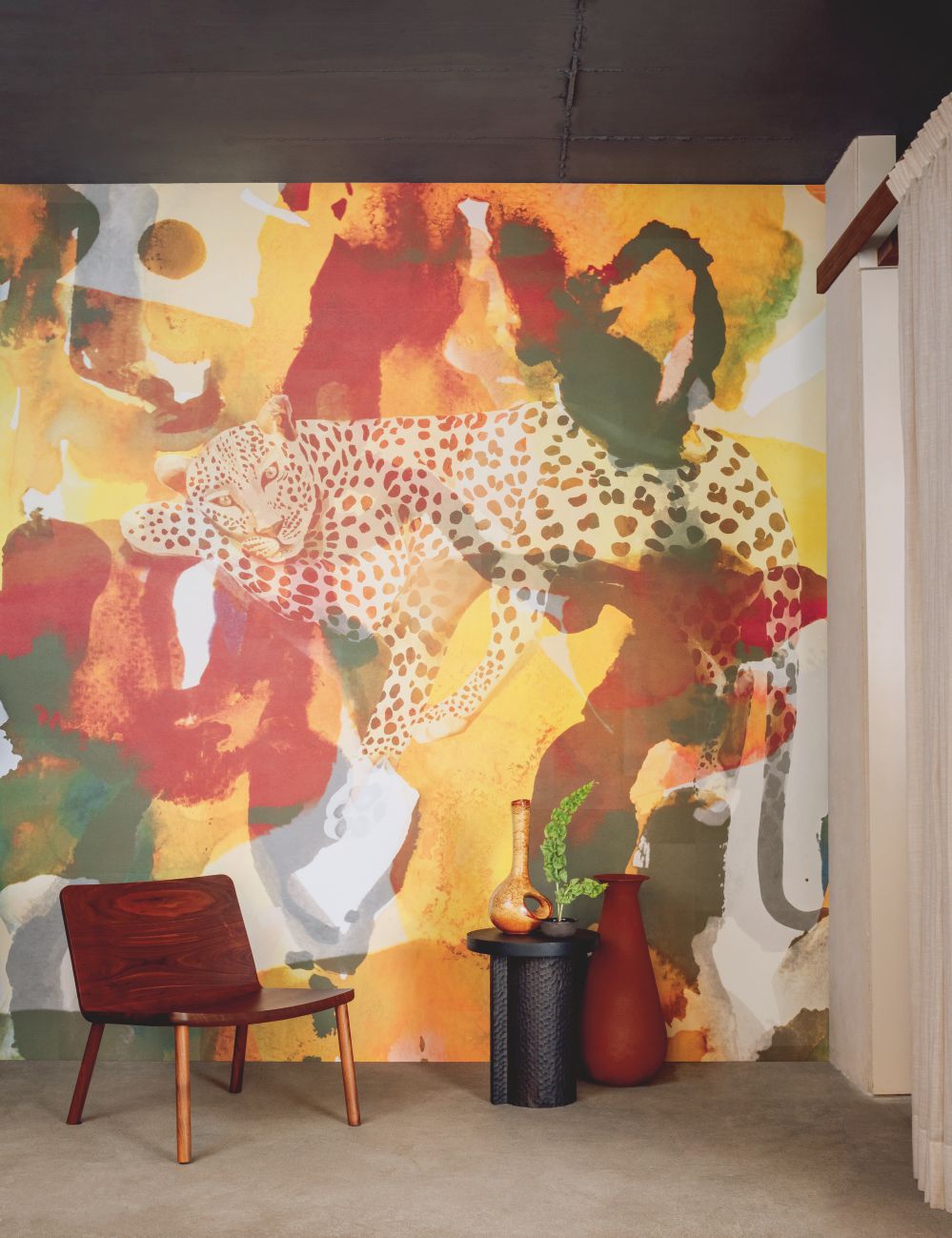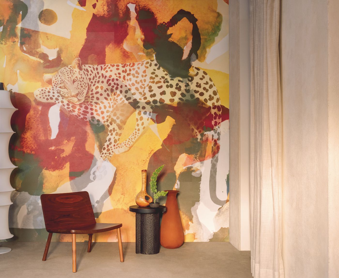 The collection renews the codes of a wild world, taking a panther's stride away from déjà-vu. Determined to share a different character, leopards, tigers and cows take on a calmer face, offering up patterns, chevrons and motifs with a sensual, warm and contemporary energy.