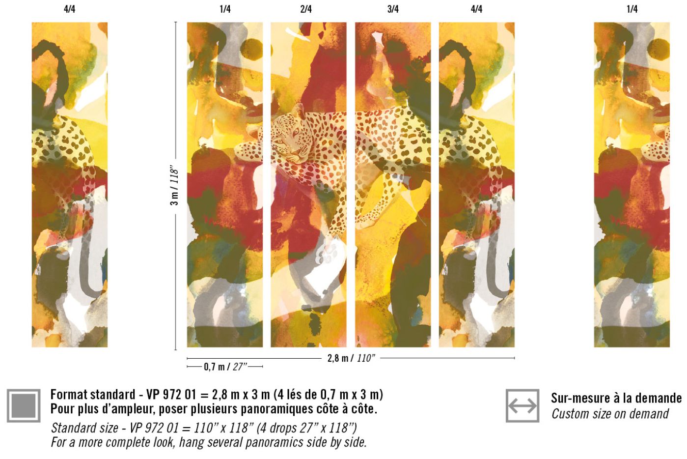 Pattern match : Standard of 2.8 m x 3 m (110''x118'') available in 4 drops of 0.7 m (27") or Custom size