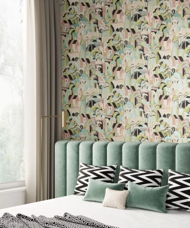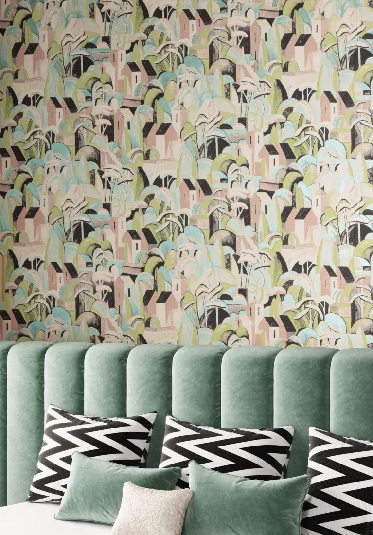 Sobborgo invites you into charming Southern villages surrounded by nature. This hand-drawn landscape has been painted in a deliberately abstract manner, resulting in a breath-taking overall look.