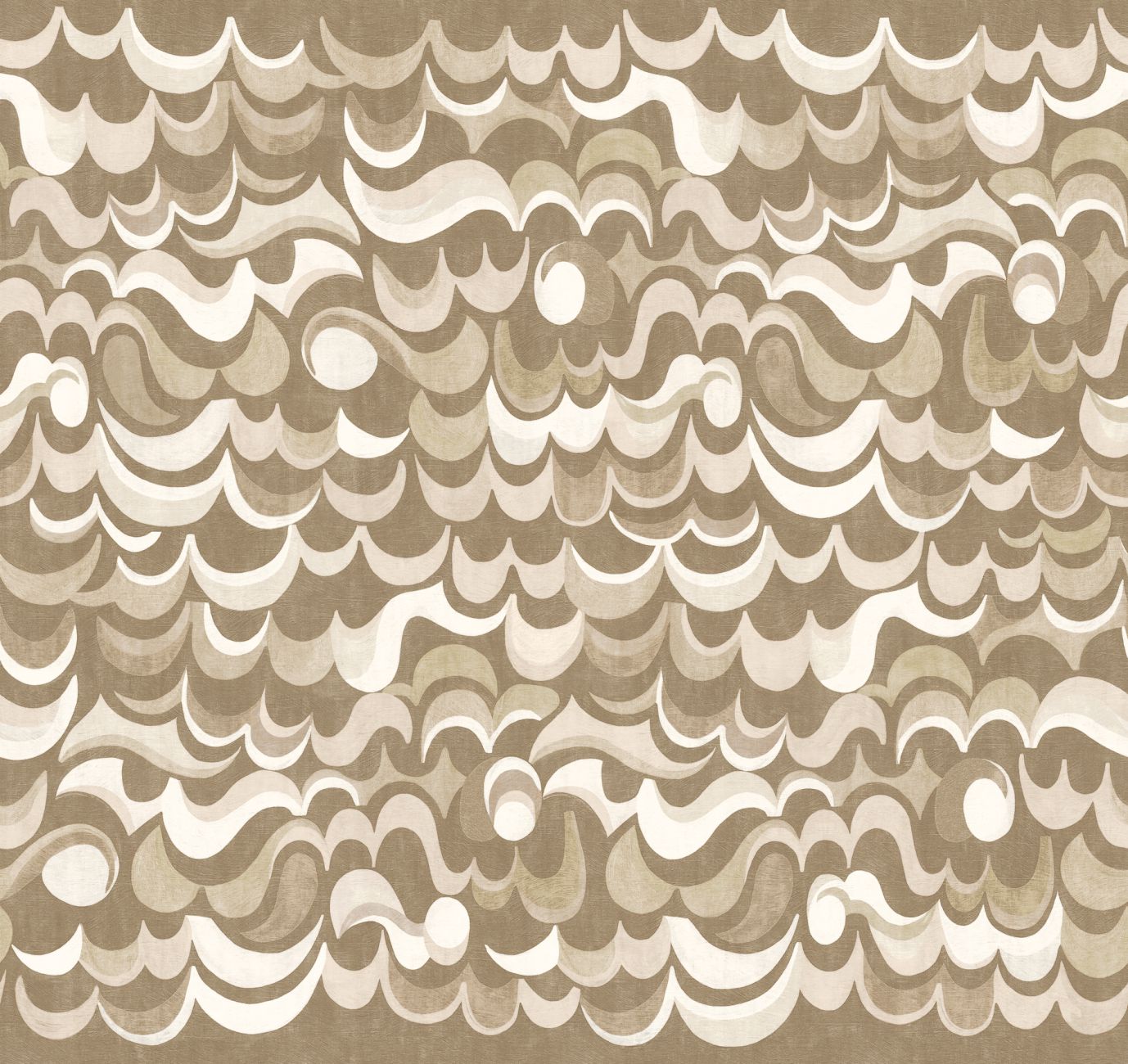 The velvety fabric Cheviot design creates a striking panoramic effect. The retro look and playful elements, combined with a touch of drama, make this a really striking wallpaper. Whether used in a dining room or grand entrance hall, this drapery-inspired wallpaper adds a regal touch to your interior.