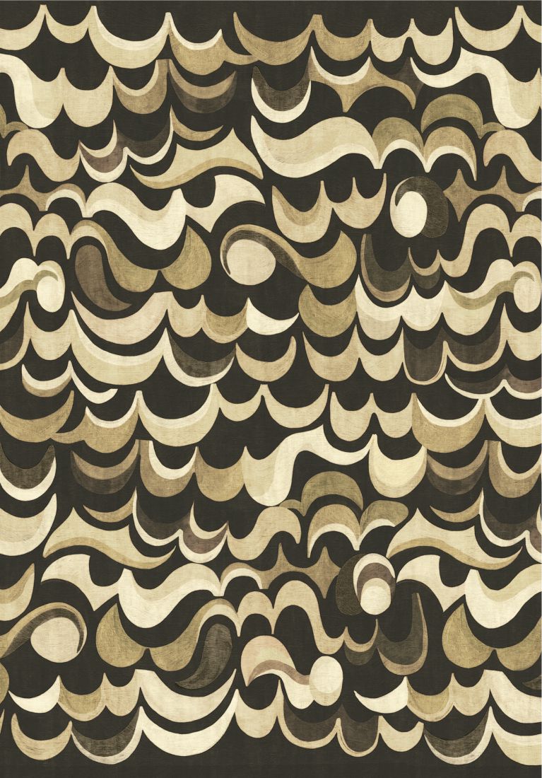 The velvety fabric Cheviot design creates a striking panoramic effect. The retro look and playful elements, combined with a touch of drama, make this a really striking wallpaper. Whether used in a dining room or grand entrance hall, this drapery-inspired wallpaper adds a regal touch to your interior.