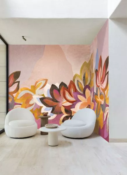 Somerset is a creative reinterpretation of the floral Jacquard pattern Idilia. The flowers have been blown up into an impressive and trendy floral composition in bold colors. Bigger, more beautiful, and more vibrant.