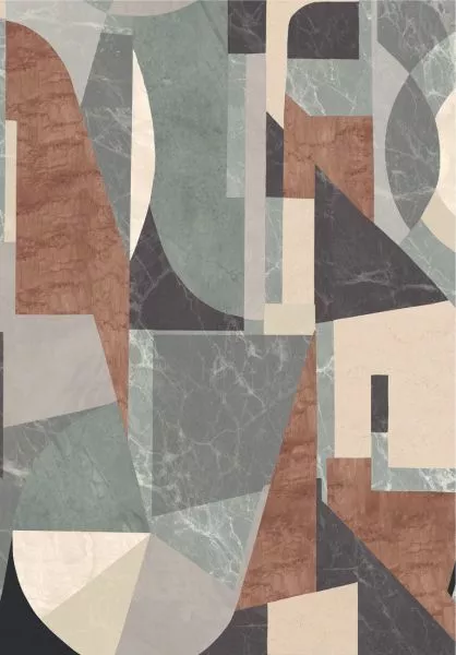 Palazzi is a calepinage of geometric stone shapes. We obtained an architectural effect through the size and combination of various types of stone, such as travertine and marble. As with mineral patina, certain pieces of stone in this wallpaper feature a more polished or more matt finish.