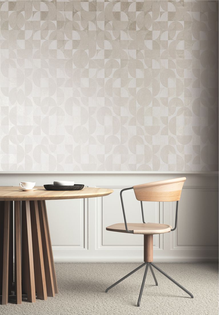 We used sisal rope for our Thaos and Phaedra wallpapers, which merge intricate patterns and interplays into a balanced and harmonious whole. The depth in the design was created through the use of this natural material.