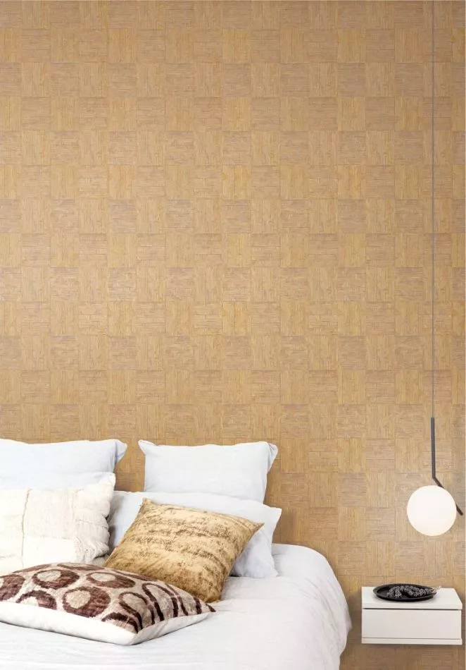 We juxtaposed a number of designs made from natural yarns to create a playful geometric effect in our Asterion wallpaper. The organic fabric enabled us to retain a certain softness within this geometry.