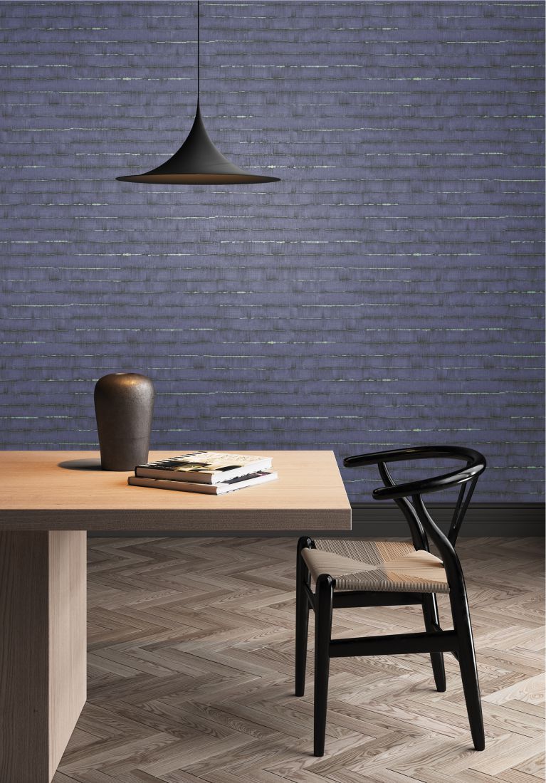 The Tanin wallpaper features fissured material. We divided this into irregular strips and re-created the appearance of light streaming in through the cracks.