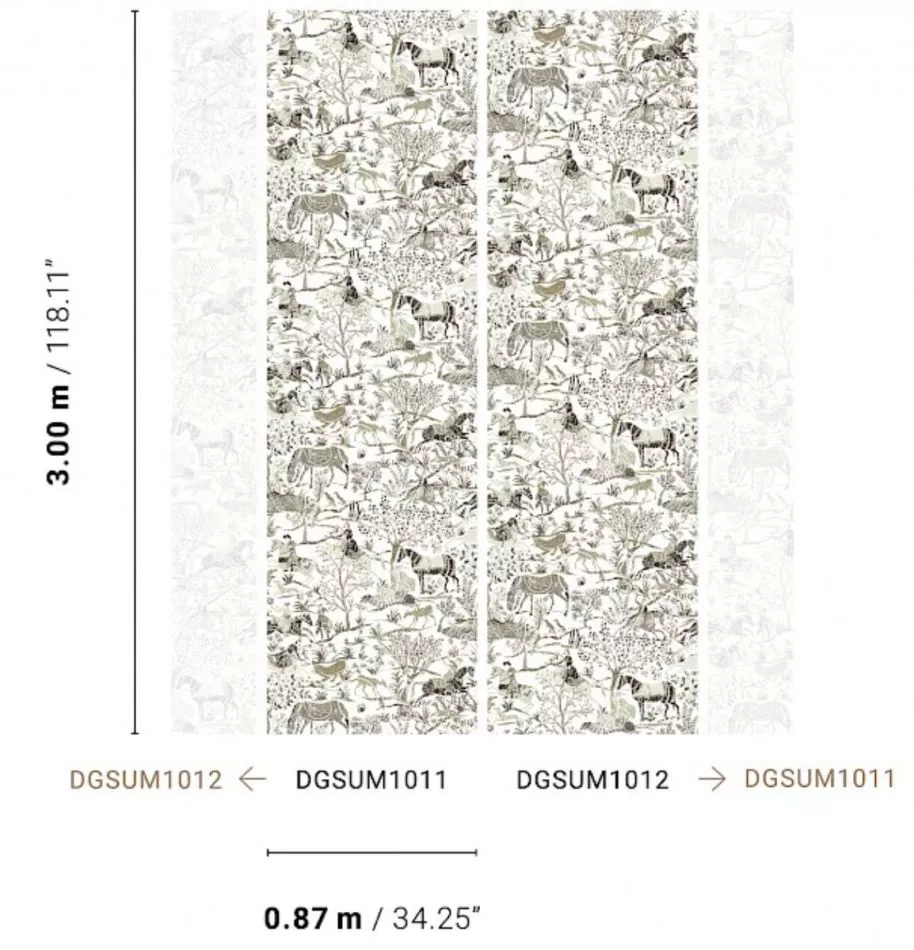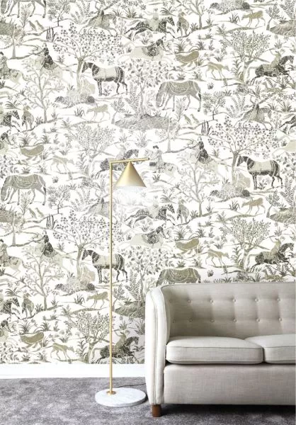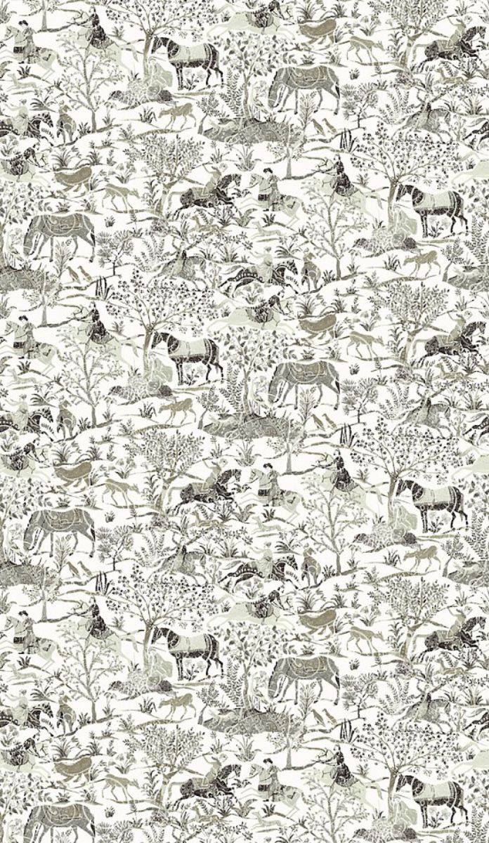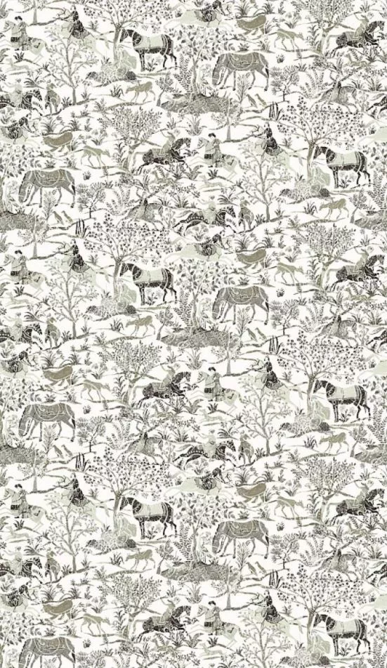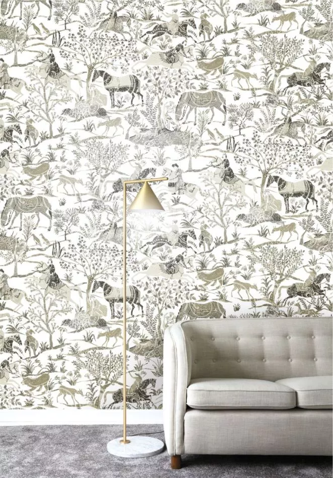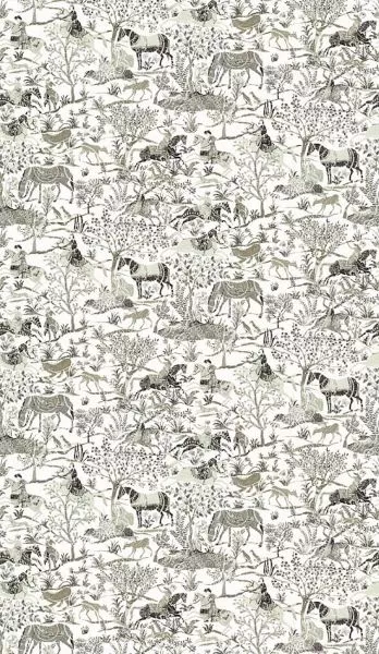Our digital wallcovering Marwari is inspired by the numerous Indian miniature paintings representing everyday life. Named after the prized rare breed of horse from the Marwar region in India, our Marwari wallcovering depicts horses and other animals in a lush setting of trees and bushes. Printed on sisal with a soft paisley pattern breathing life into the figures, it has the luxurious look and feel of a real textile.