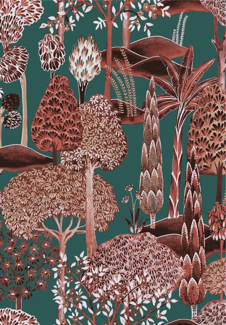 The hand-painted trees of Viray are also inspired by miniature paintings. We combined tree forms from various paintings in one wallcovering which exudes a powerful energy of nature. “Viray” is a play on the word “virya”, the Buddhist term for energy. Available in five powerful colourways, this wallcovering brings a vibrant spirit to any interior.