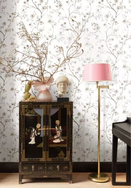 Our wallcovering Sari blossoms with flowers, a nod to the famous elaborate ‘sari’ garment traditionally worn by women throughout India. The hand-painted blooms on our wallcovering are finished with a glossy effect, with a gently faded effect on the leaves and branches.