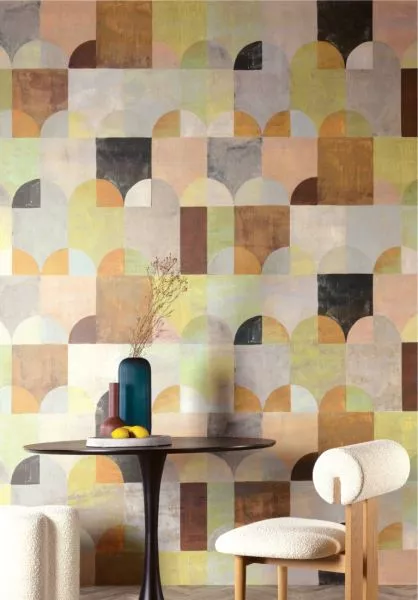 Taking this abstract approach further is our Patina design, depicting a complex array of colourful patches. Enlarging the design produces a beautiful, monumental result.