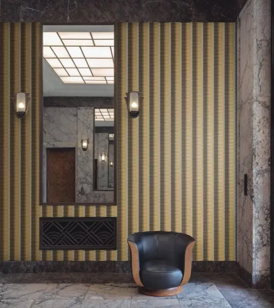 The design recalls the wallhangings of Anni Albers. The color effect of the rectangular grids gives the JULES wallcovering a certain tactility, like a weaving pattern. It becomes a form of abstract art that can freely move in the space.