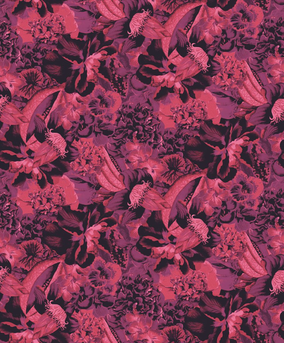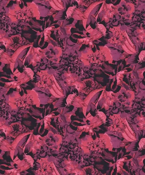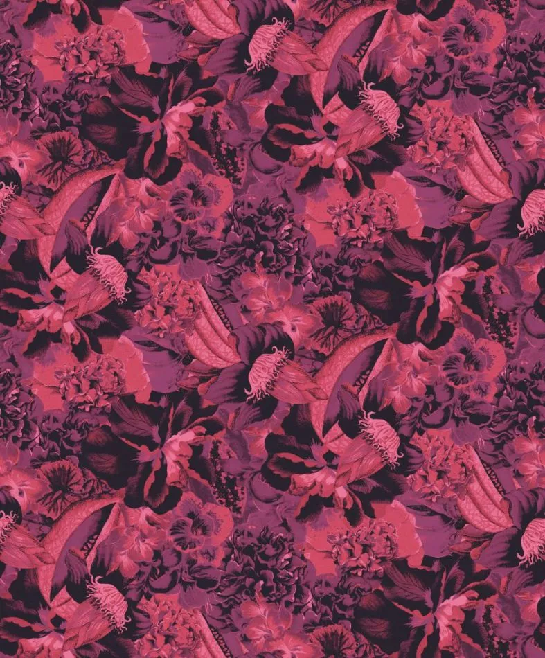 Our hand-painted Constanza and Frida wallpapers each invoke the exotic with their bright colours and tropical fruits. Constanza features a dazzling display of almost life-size papayas and bunches of ripe bananas. The voluptuous fruit boasts a glossy sheen, in pleasing contrast to the matte leaves.