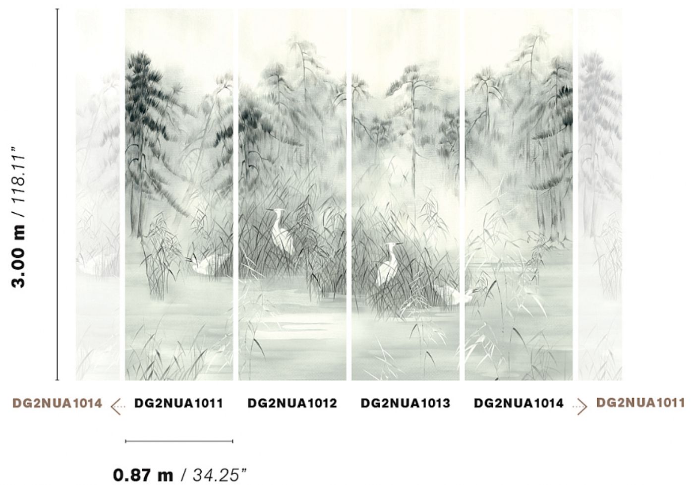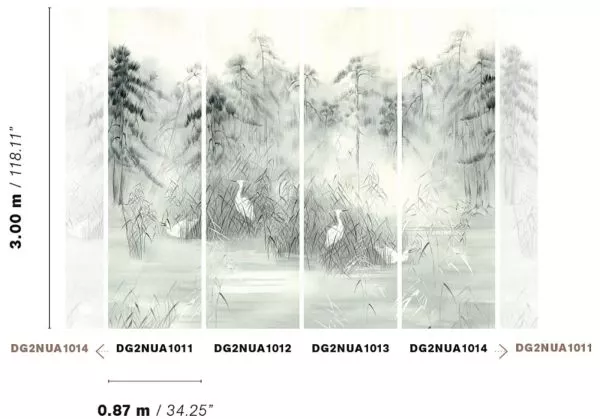 Material: Sisal on non woven backing Dimensions: 4 x 0,87m x 3m Match: 4 Panels in order DG2NUA1011 - DG2NUA1012 - DG2NUA1013 - DG2NUA1014 Light resistance:Lightfastness How to paste:Paste the wall How to remove:Strippable