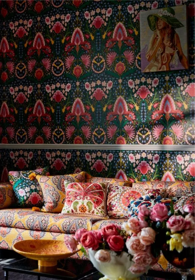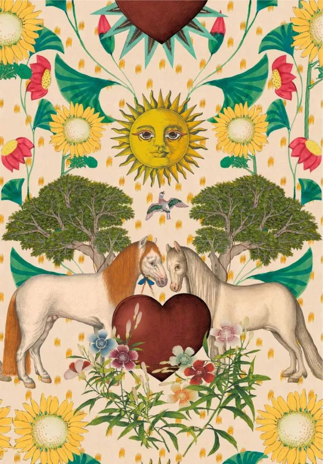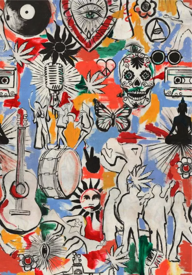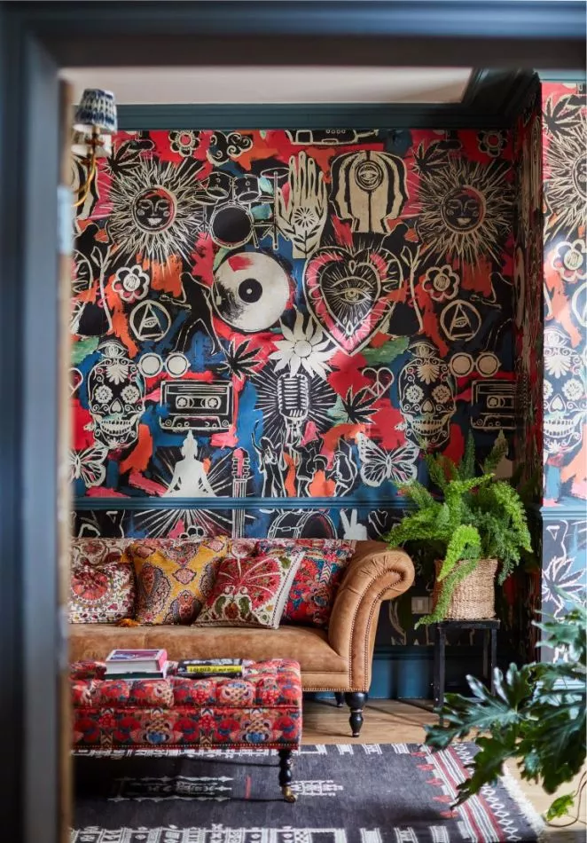 The vivacity and courage of the counterculture generation shines through in this flamboyant collection on different formats such as wallpaper, fabric, furnishing and accessories. Representing freedom and unconventional for many of us, the courageous theme is a revive of the Woodstock style, bringing touches of timeless bohemian beauty to the home. Instruments, Buddha silhouettes, and psychic symbols depict the spirit of the festival, transposing you to an era where many fought for love and peace.