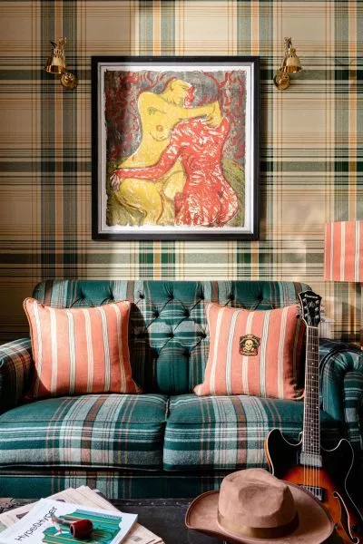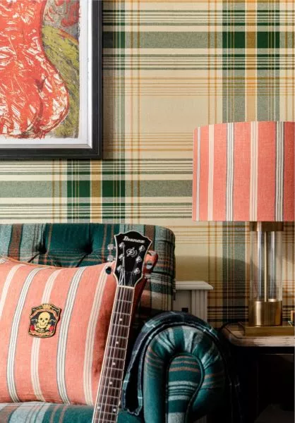Channel the charming characteristics of traditionally woven cloth with our take on iconic tartan plaid. A simple yet personality-filled design composed of tonal stripes built up in layers, MONTEREY exhibits the depths of colour historically achieved when multiple threads are combined on a loom. The supersized nature of the checks simplifies and modernises the age-old pattern while flecks of white create the feel of a light fabric, the Sapphire palette artfully merging rich red and royal blue.