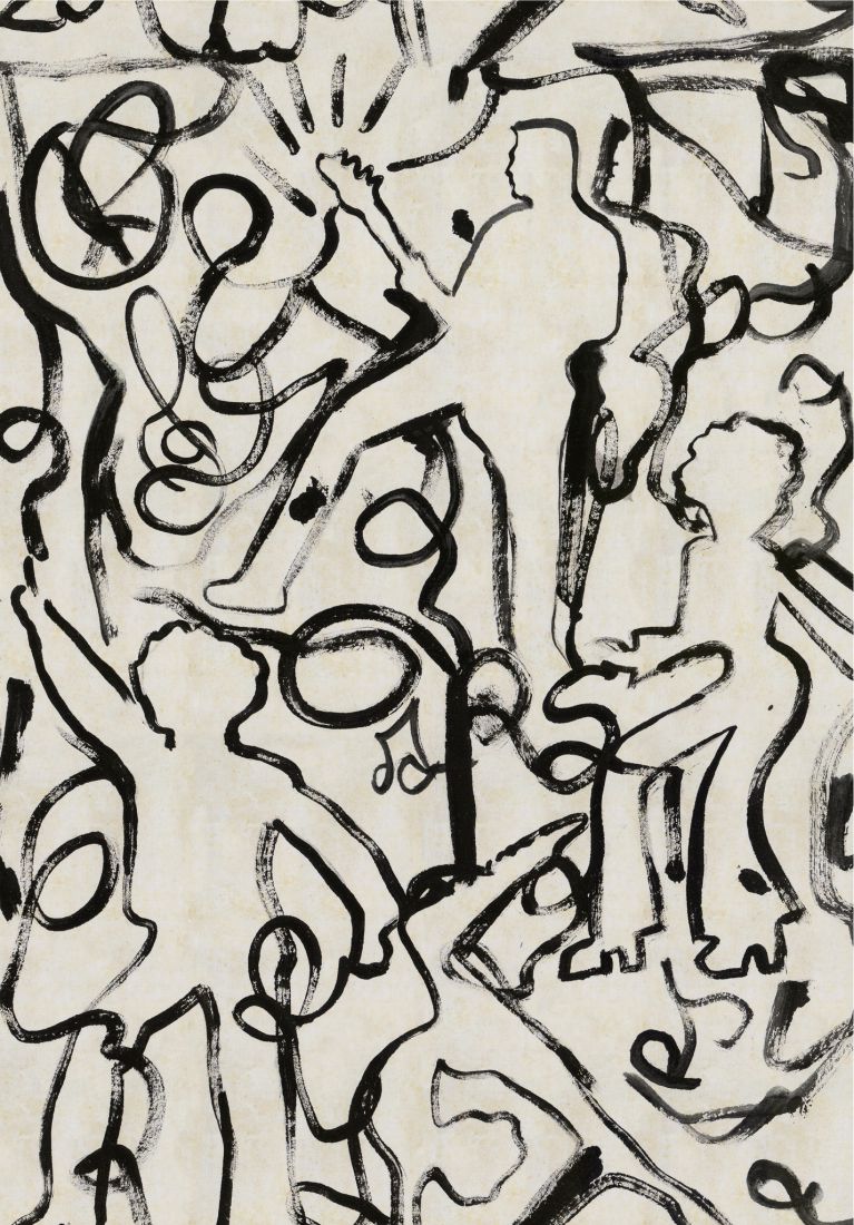 Channelling the vivacious energy of a crowd-pleasing musical performance, our ON THE STAGE wallpaper is a linear exploration of a raucous night with the band of the moment. A single line charts the twists and turns of an electric evening, echoing the sounds of strumming and singing; the clarity of the paint fading in and out to mirror the music with the vivid Greenery palette uplifting and adding energy to its neutral cream background.